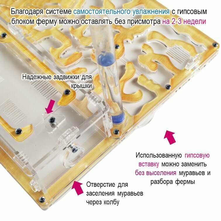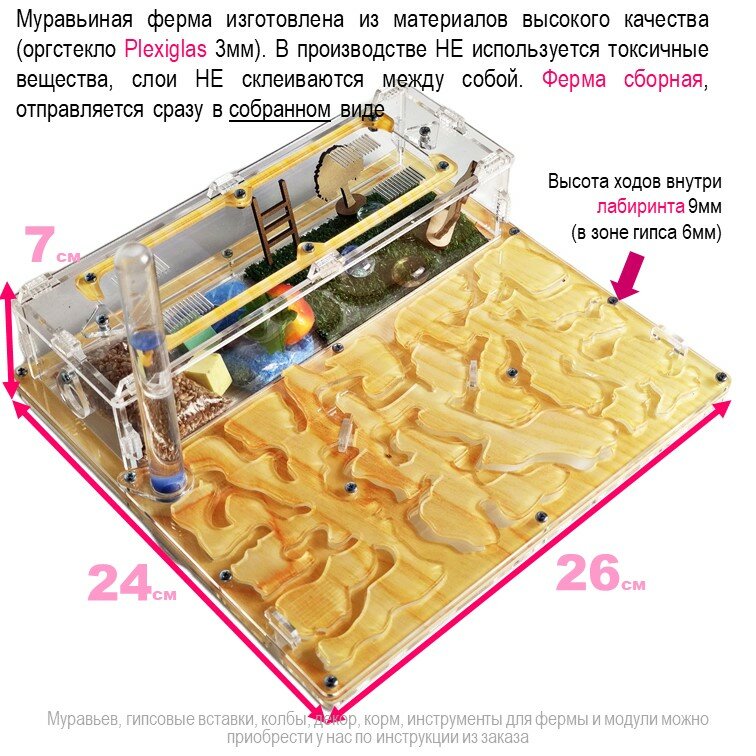 | Дополнительная информация | Муравьи в комплект НЕ входят, но их можно приобрести у нас по инструкции из заказа |