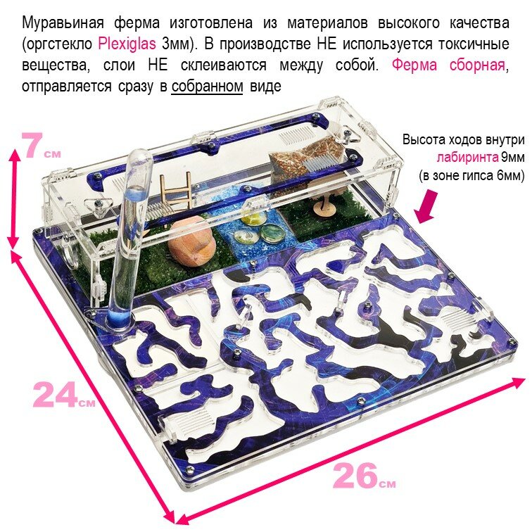 | Дополнительная информация | Муравьи в комплект НЕ входят, но их можно приобрести у нас по инструкции из заказа |