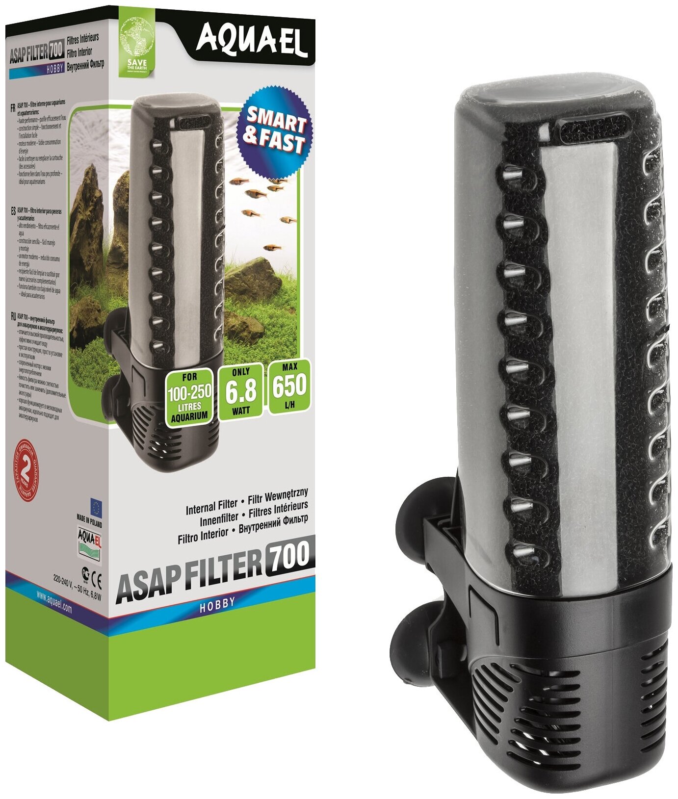 Внутренний фильтр Aquael ASAP FILTER 700 для аквариума 100 - 250 л (650 л/ч, 6.8 Вт)