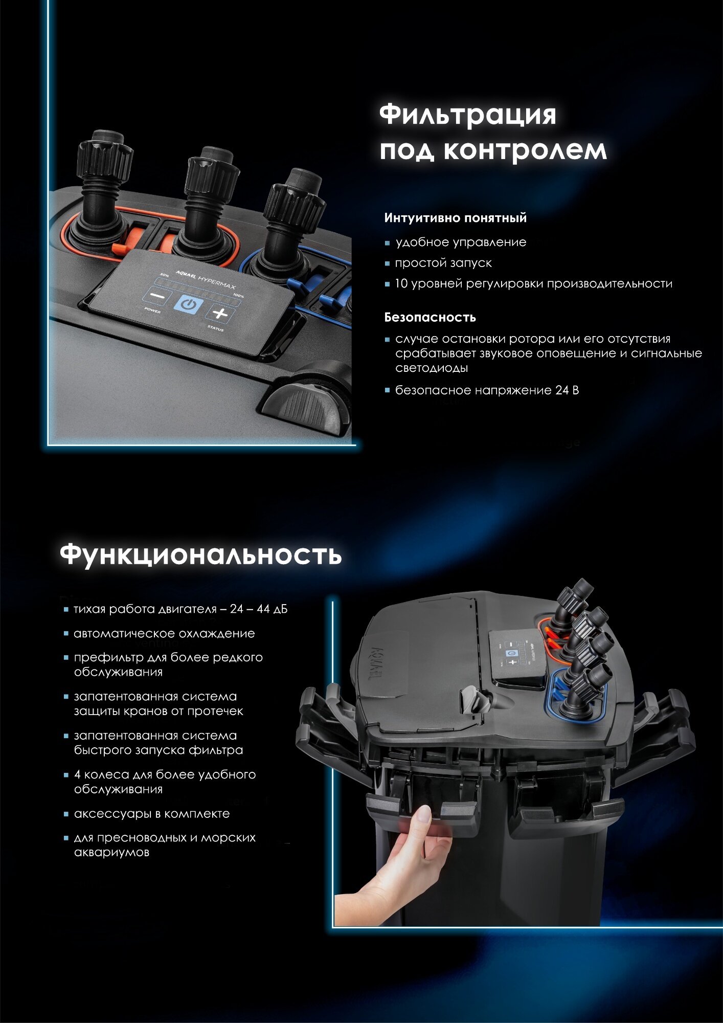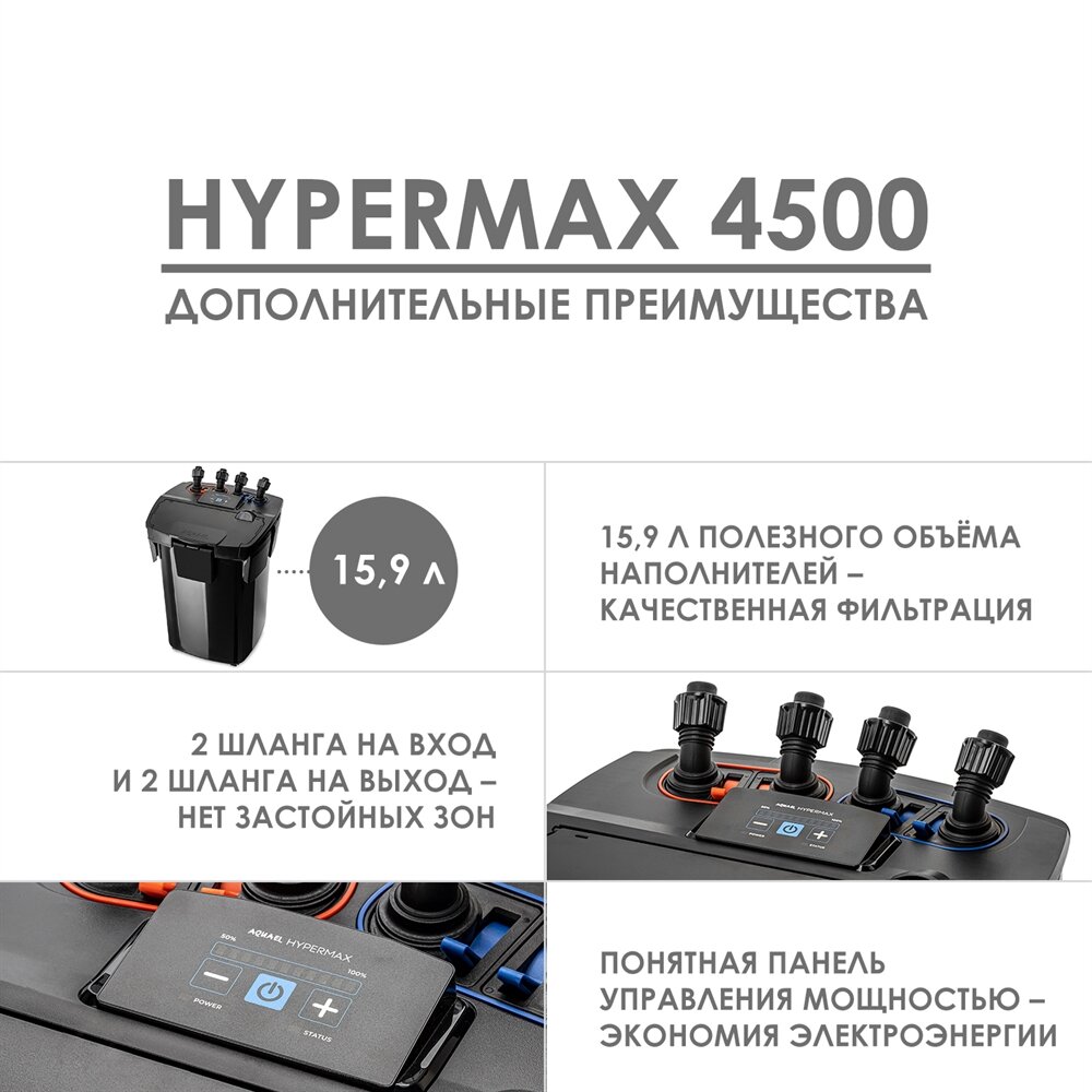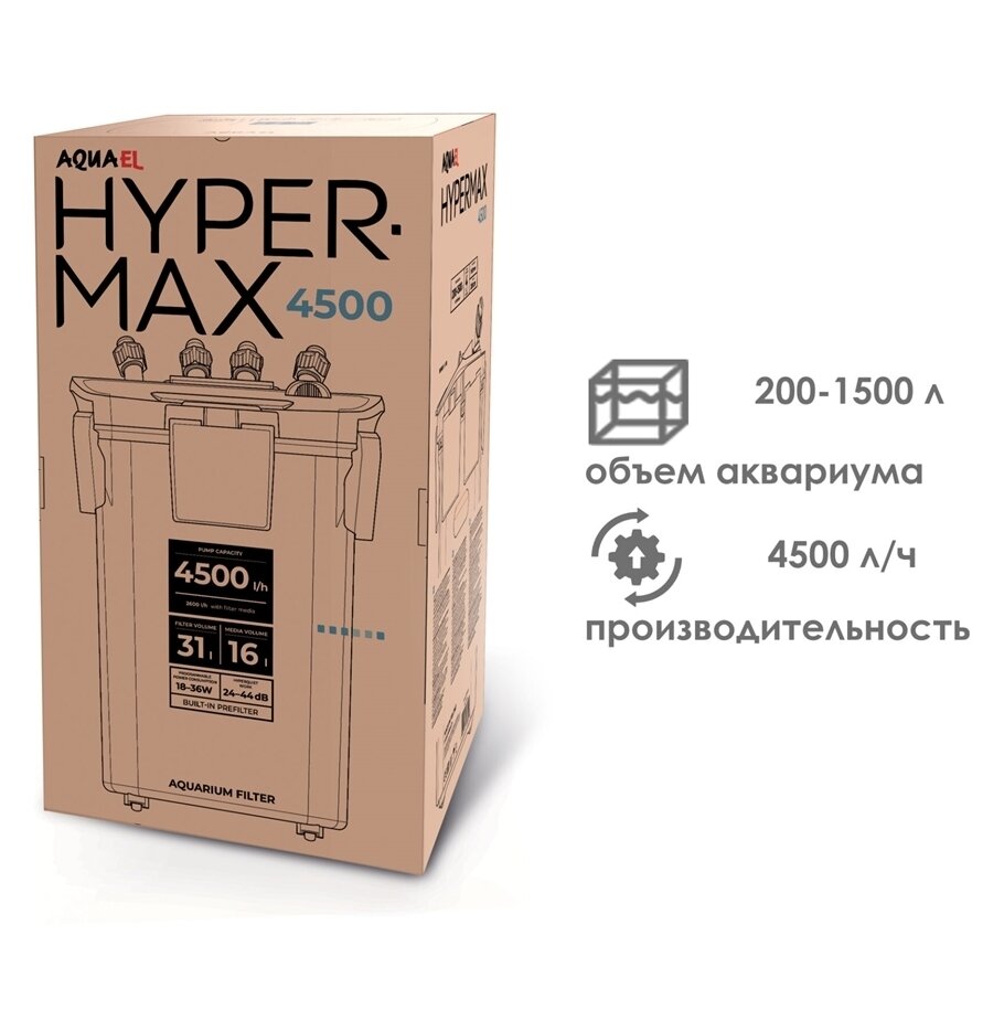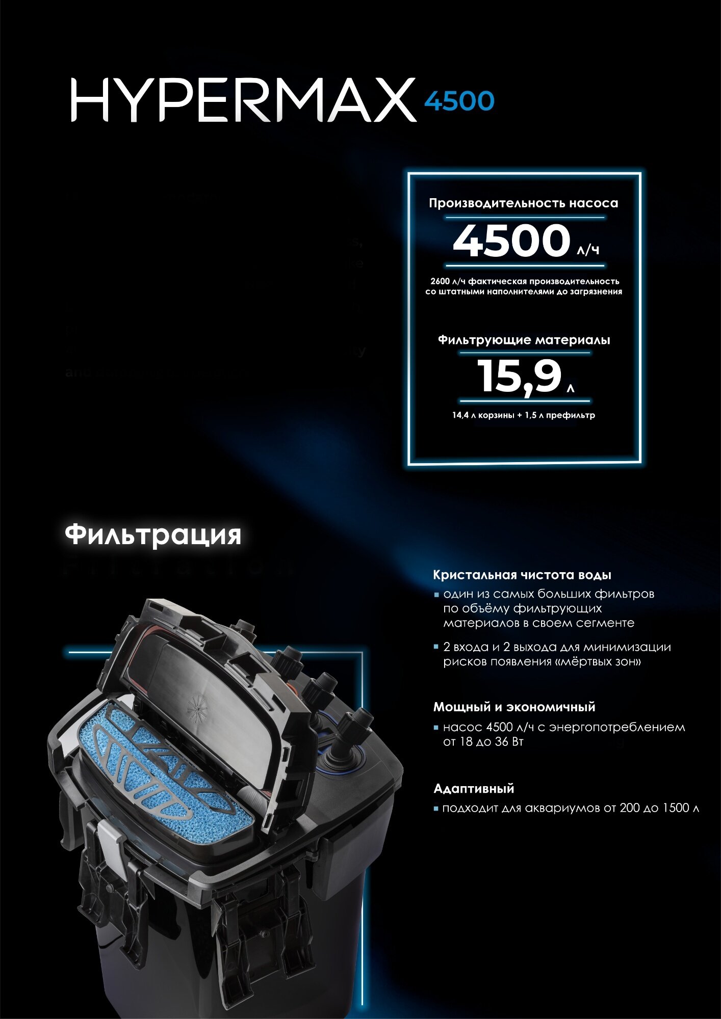 Фильтр внешний для аквариума 200-1500л AQUAEL HYPERMAX 4500 (4500л/ч, 18-36Вт, h=200см) интересное: