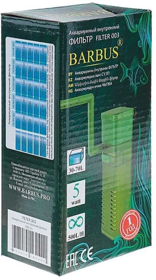 Ниже Вы можете прочитать отзывы на BARBUS FILTER 049 Фильтр внутренний с аэратором и флейтой 1200 л./в час, 25 Вт., 150-250 л., ознакомится с подробными характеристиками, посмотреть интересные обзоры и фотографии на BARBUS FILTER 049 Фильтр внутренний с аэратором и флейтой 1200 л./в час, 25 Вт., 150-250 л..