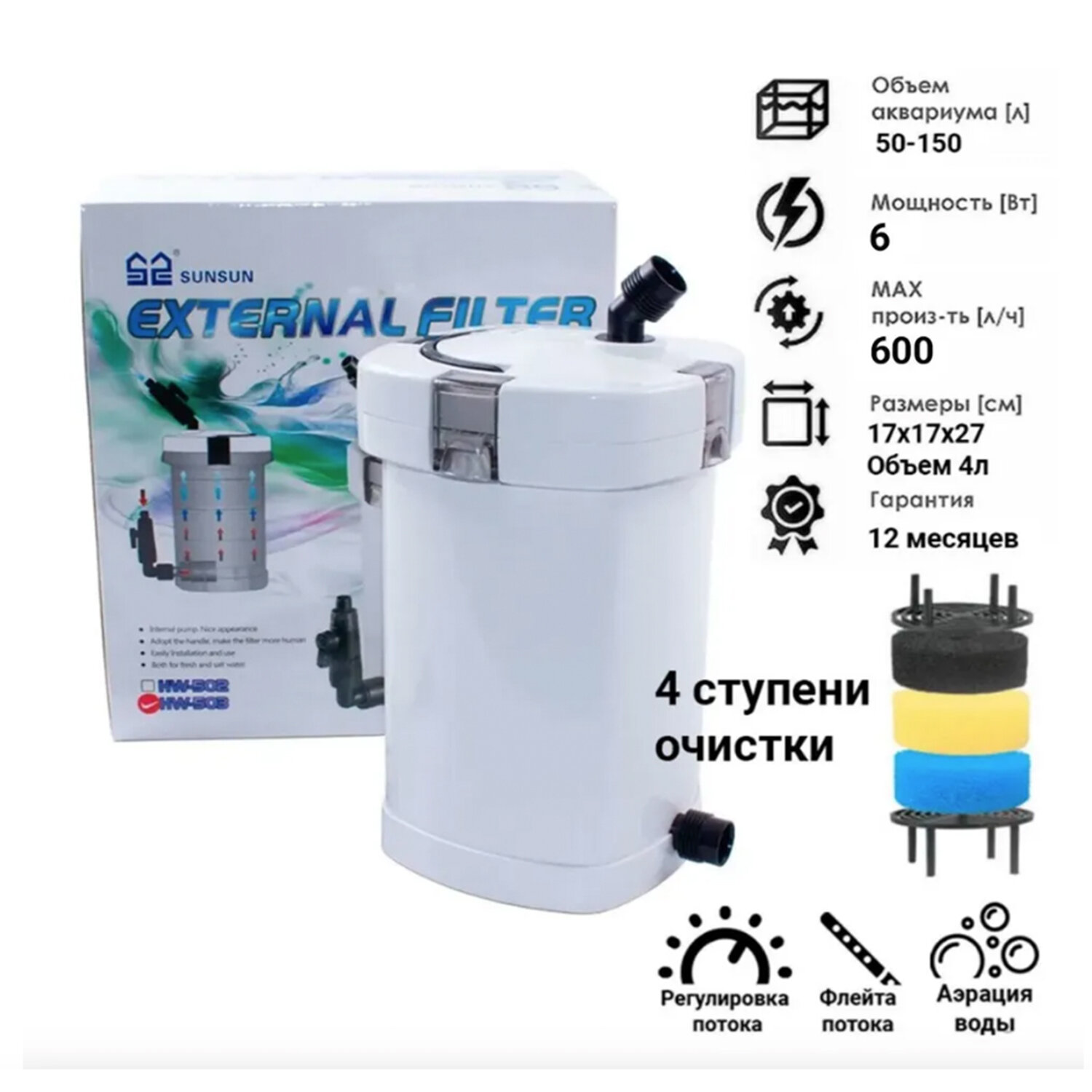 Фильтр внешний для аквариума Sunsun HW-503 (для акв. 50-150 л. 350 л/час.) интересное: