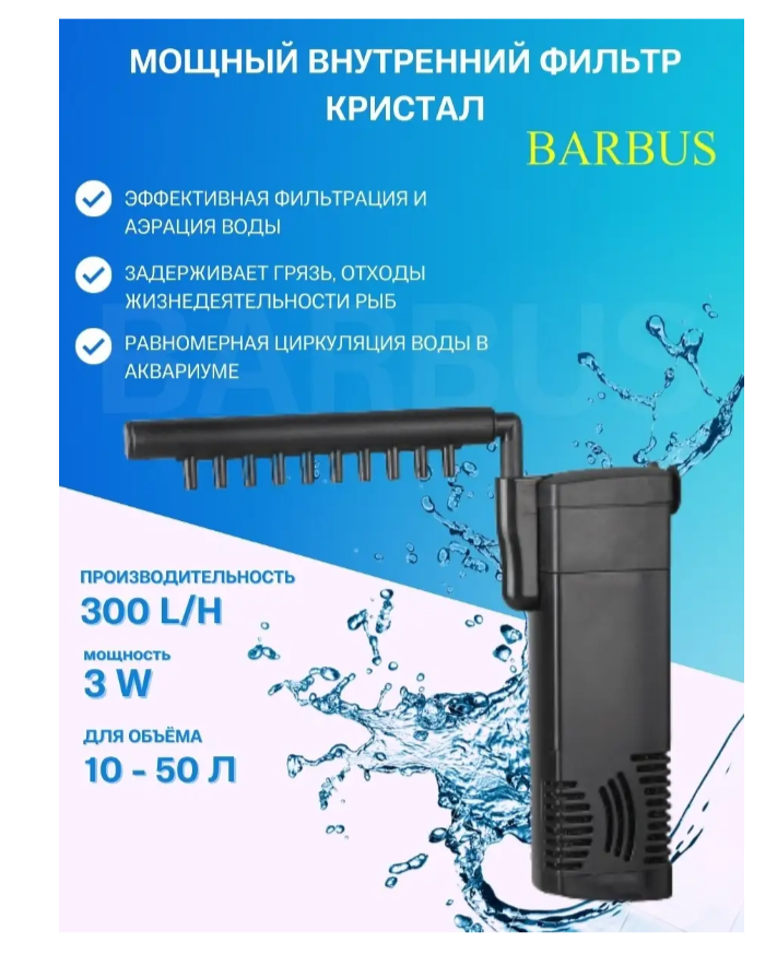 Фильтр внутренний кристал для аквариума 10-50л, 300л/ч 3ватт FILTER 022 BARBUS интересное: