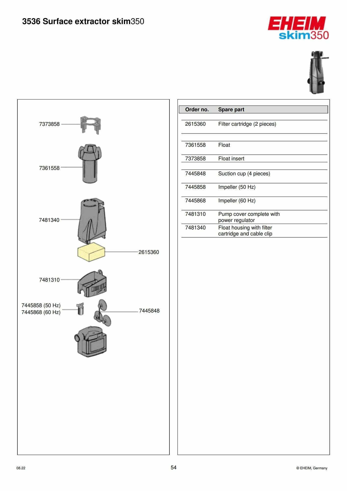 Запасные Части Скиммера для поверхности Eheim Skim 350