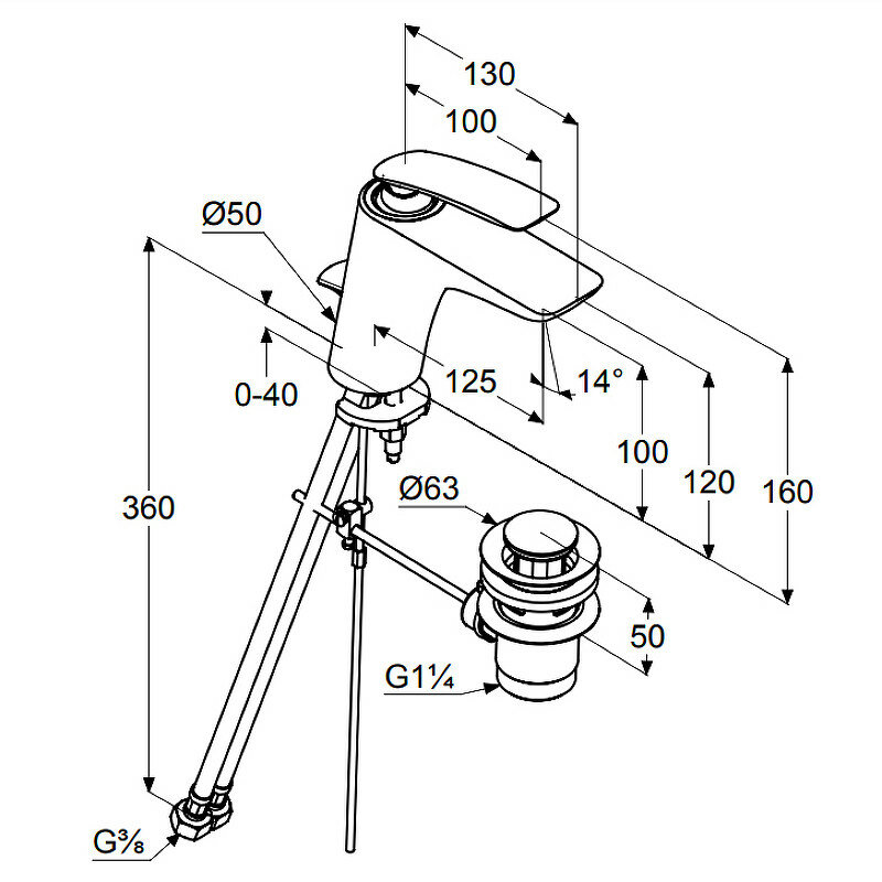 Смеситель для раковины Kludi Balance, донный клапан, хром 520230575