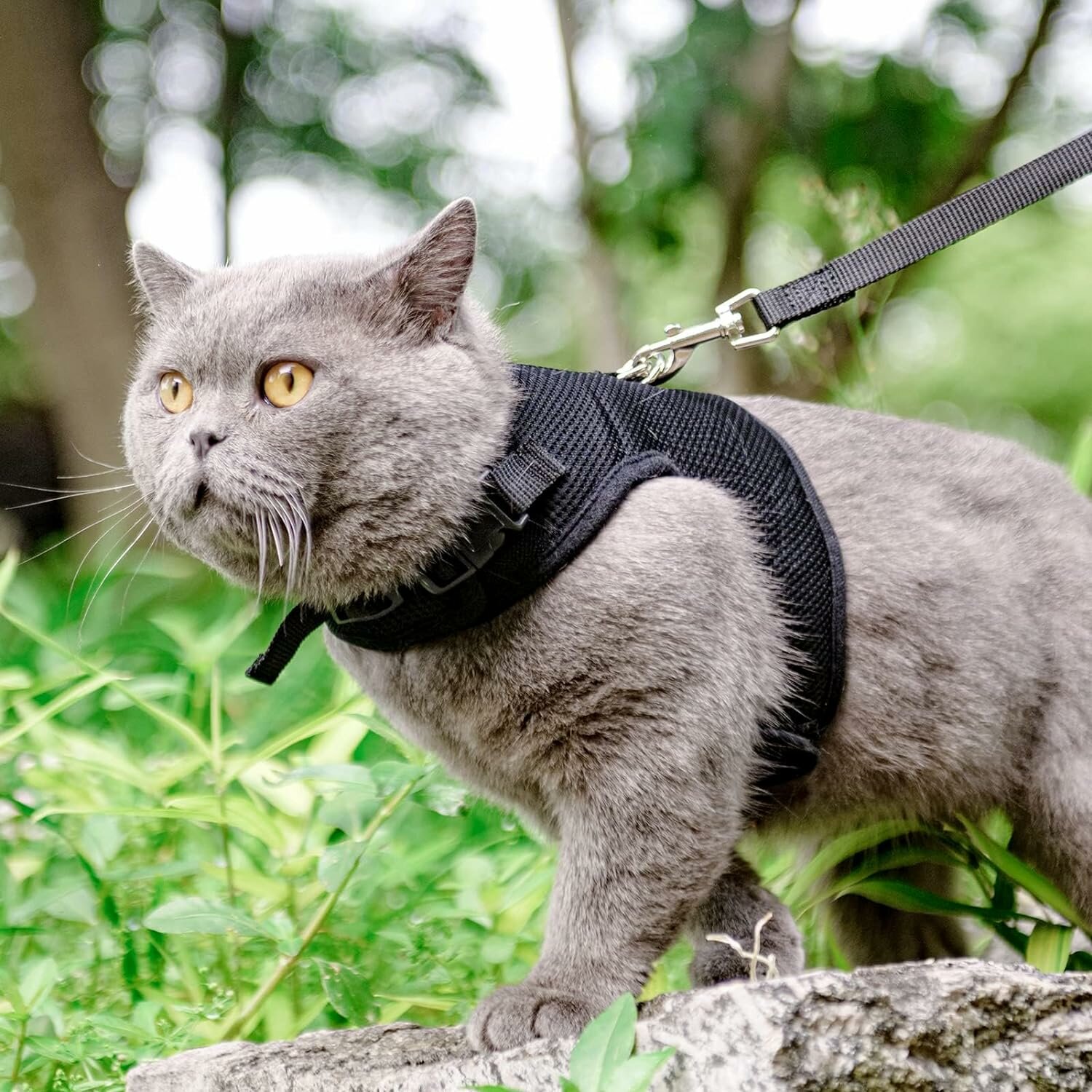 Купить Шлейка для кошек с поводком 1.5 м для прогулки / Шлейка для кроликов и собак мелких пород / черная M