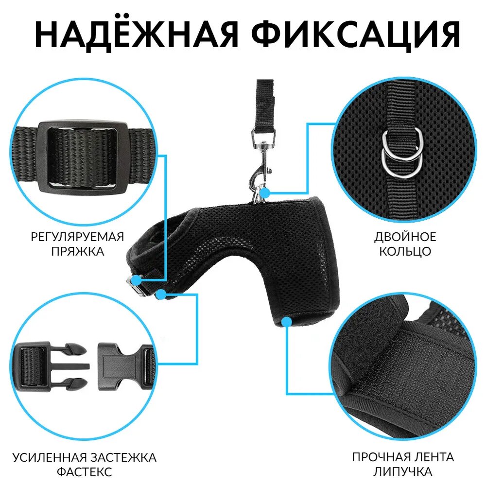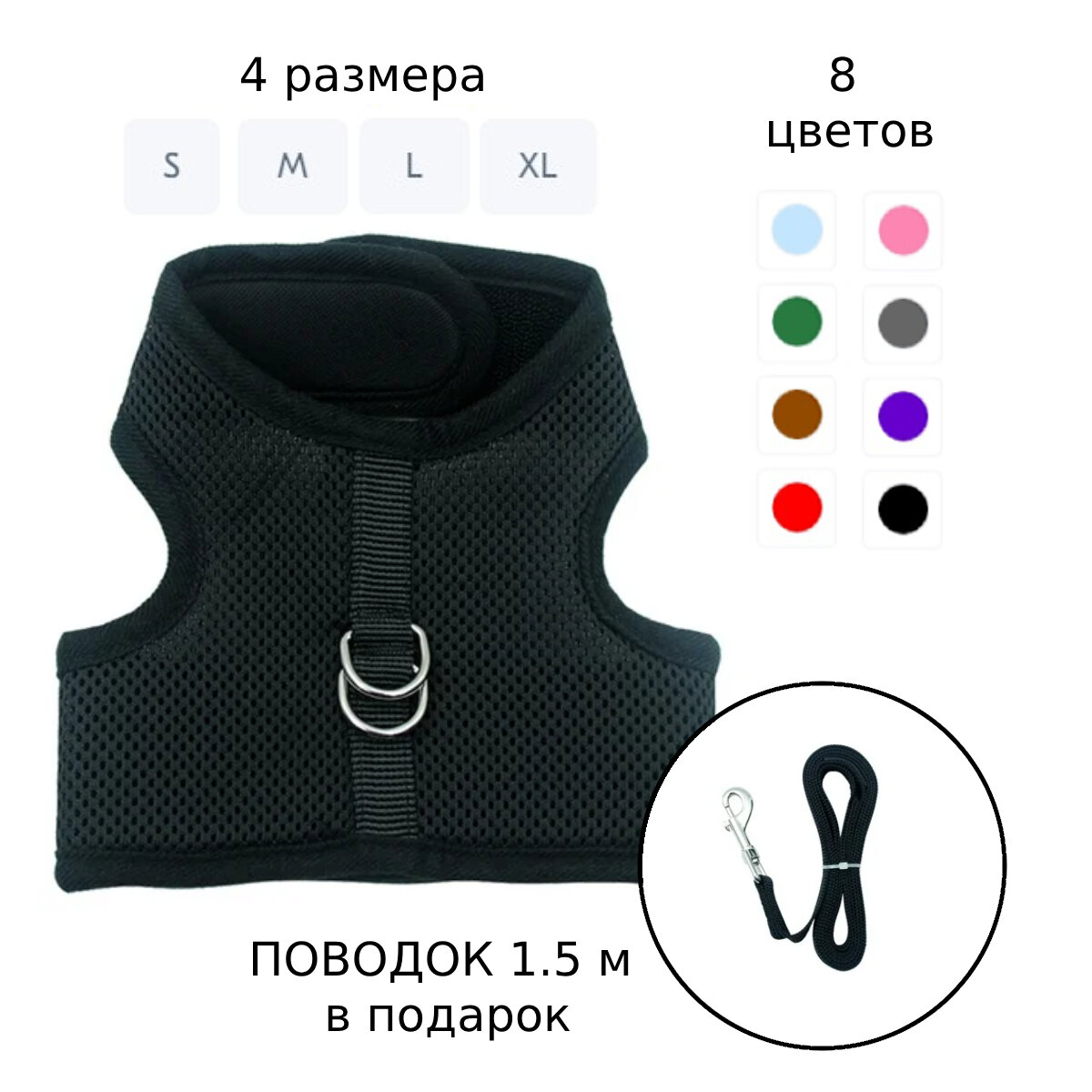 Шлейка для кошек с поводком 1.5 м для прогулки / Шлейка для кроликов и собак мелких пород / черная L