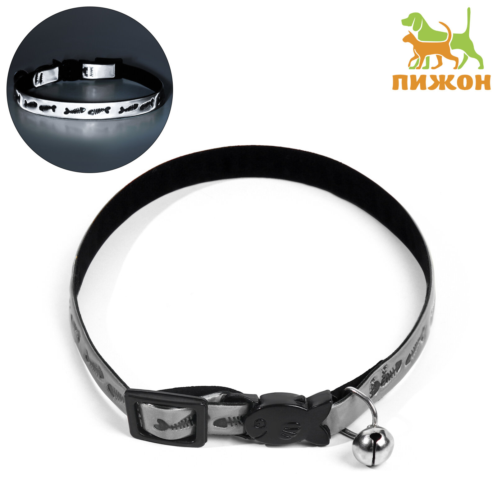 Купить Ошейник кошачий со светоотражающим покрытием "Рыбки", 30 х 1 см, серебристый
