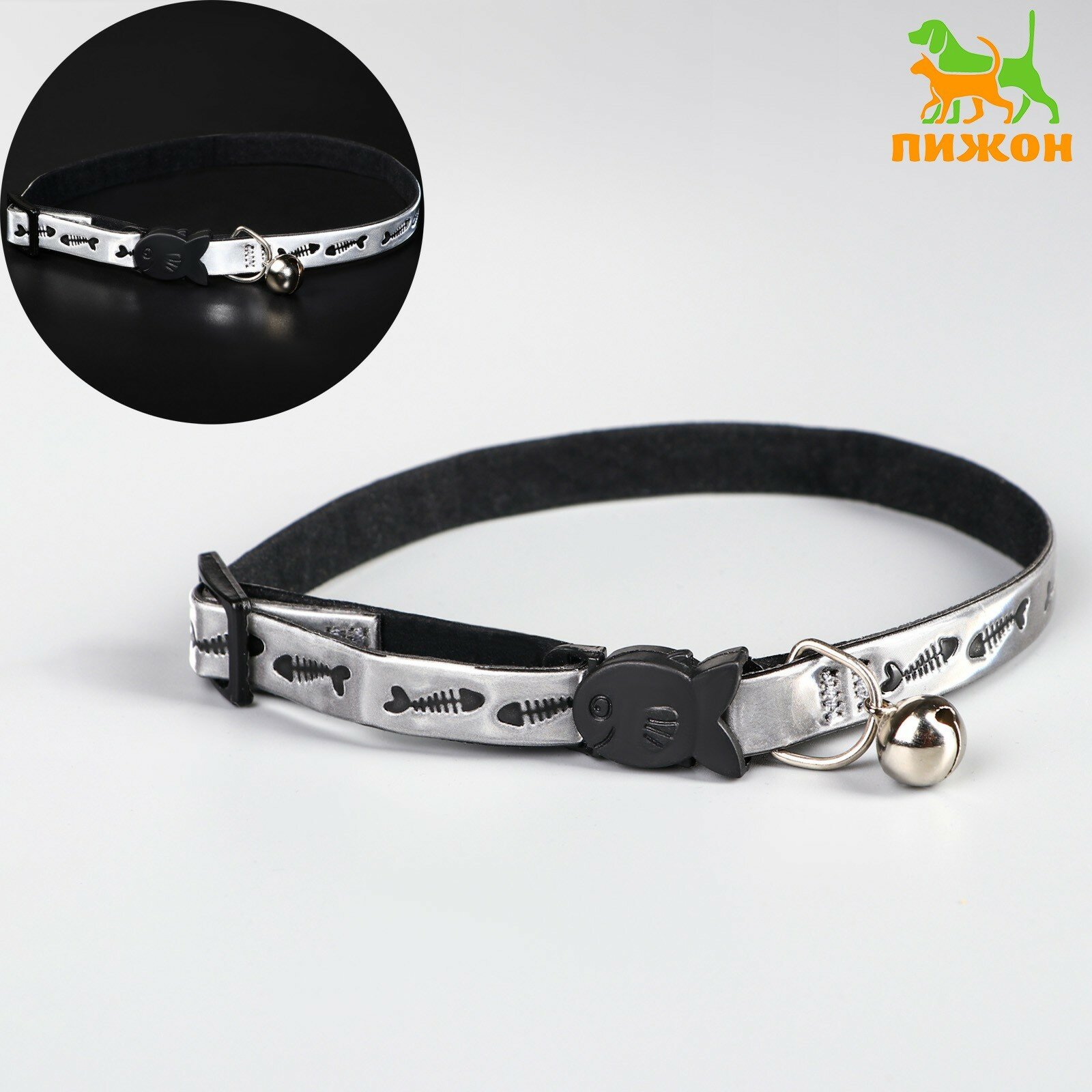 Ошейник кошачий со светоотражающим покрытием "Рыбки", 30 х 1 см, серебристый 7364443