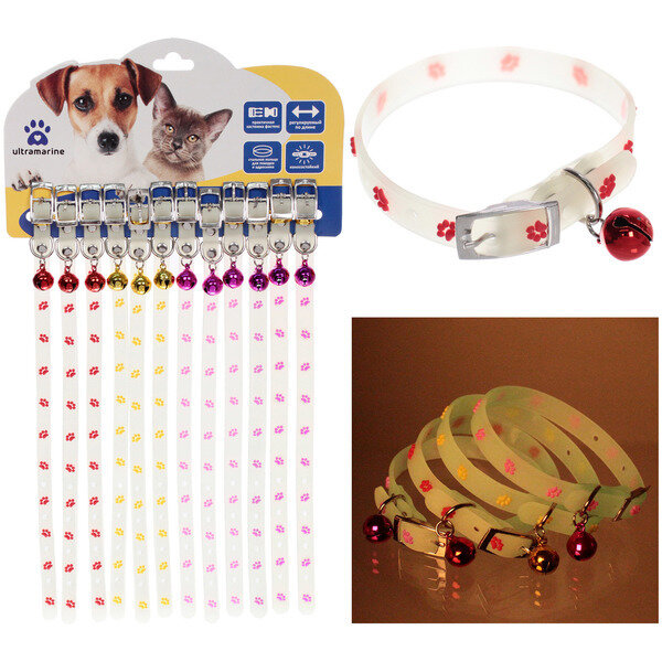 Ошейник для кошек с колокольчиком 1*30см «Neon-Лапки» светящийся (минивложение 12шт) интересное: