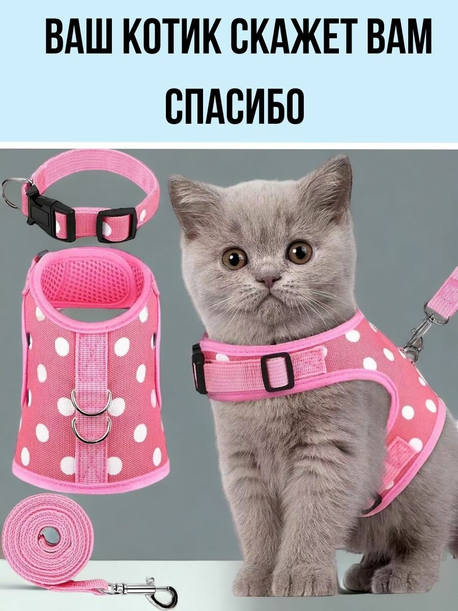 Шлейка для кошек, розовая XS интересное: