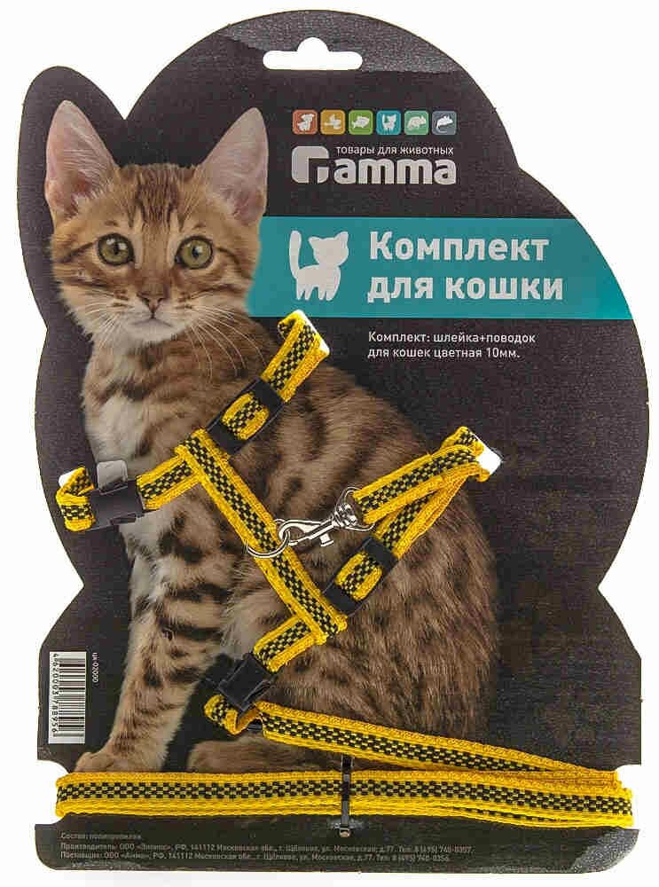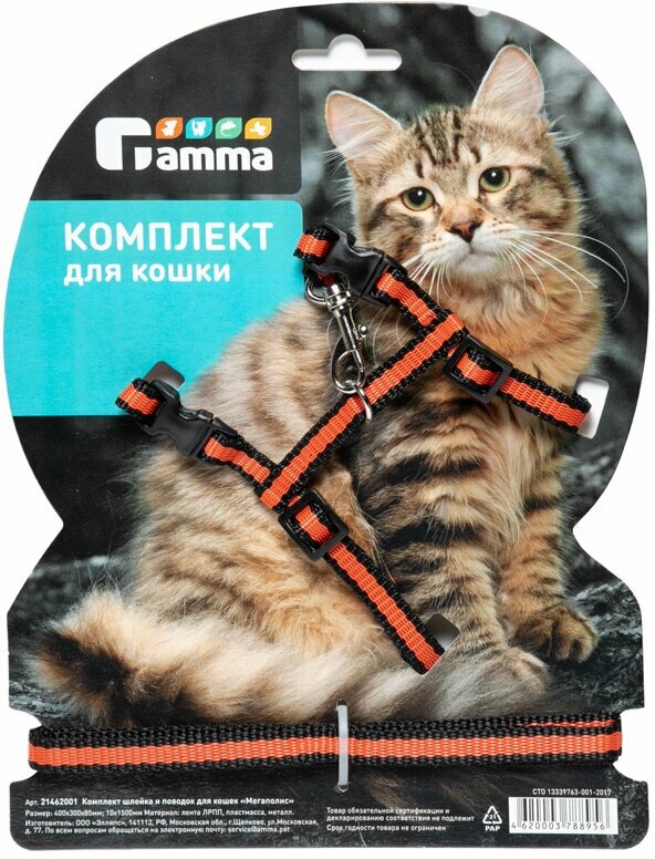 Гамма 21462001 Комплект шлейка и поводок д/кошек "Мегаполис", 400*300*85мм; 10*1500мм .
