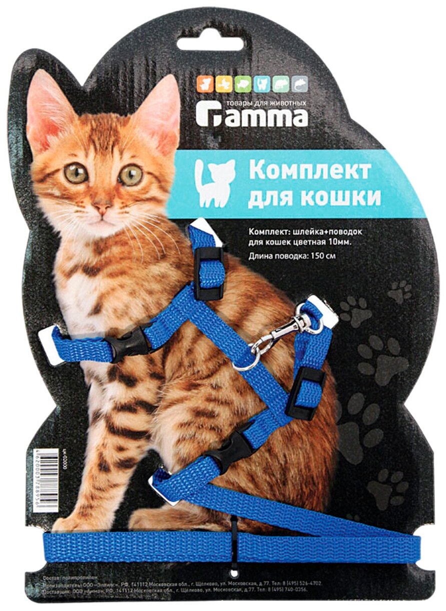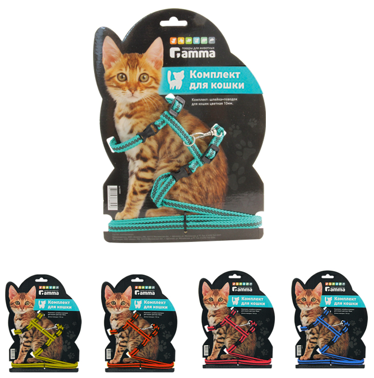 Комплект шлейка и поводок для кошек из капрона, 400*300*85мм; 10*1500мм (блистер) Gamma