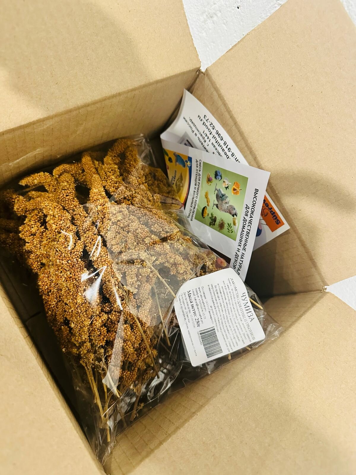 Лакомство Чумиза в колосках для птиц и грызунов 250 г. интересное: