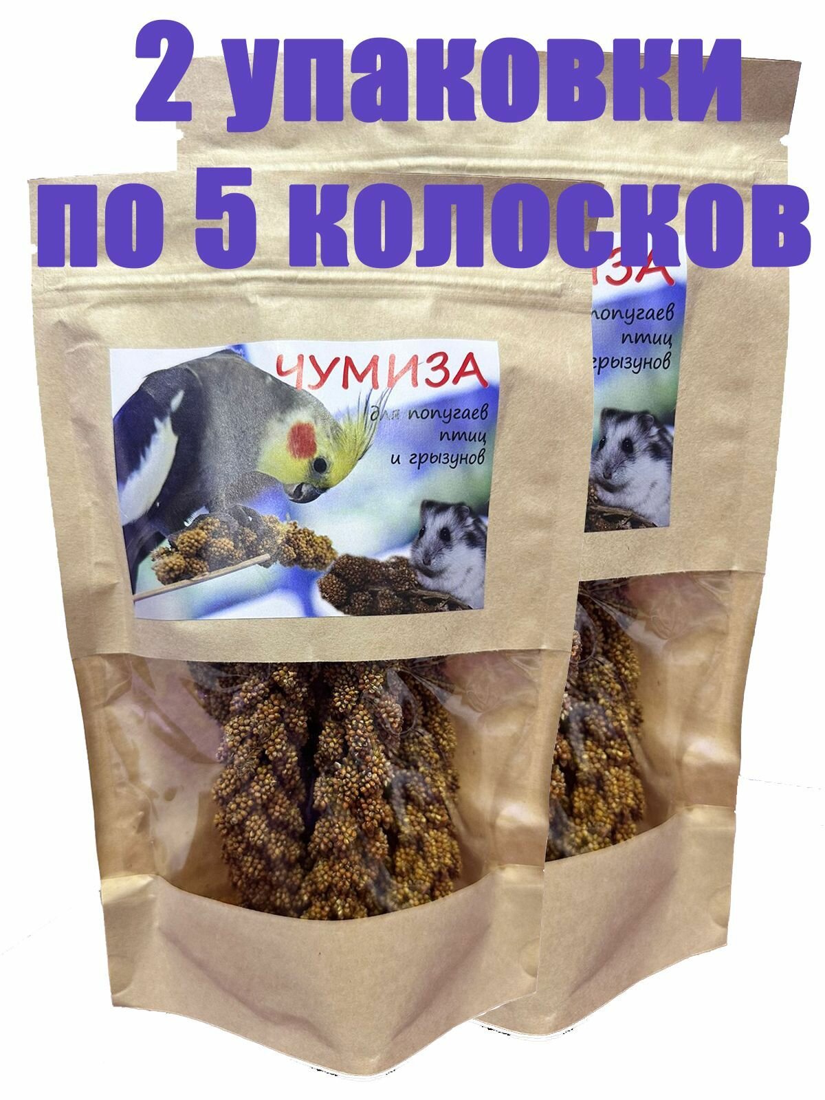Лакомство для птиц и грызунов чумиза (колоски 5 шт), 2 пакета