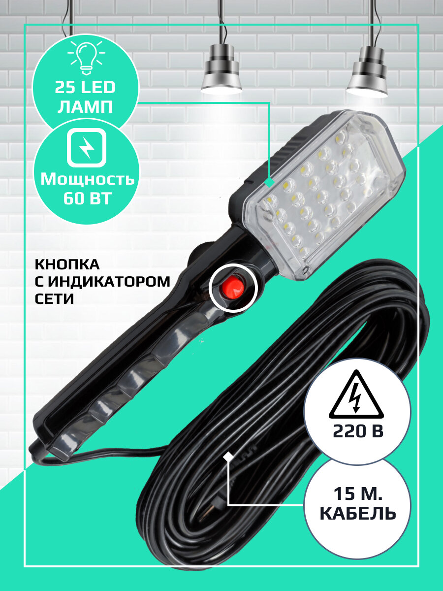 Купить Переноска-светильник/гаражная переноска/25LED ламп/с магнитом/15метров