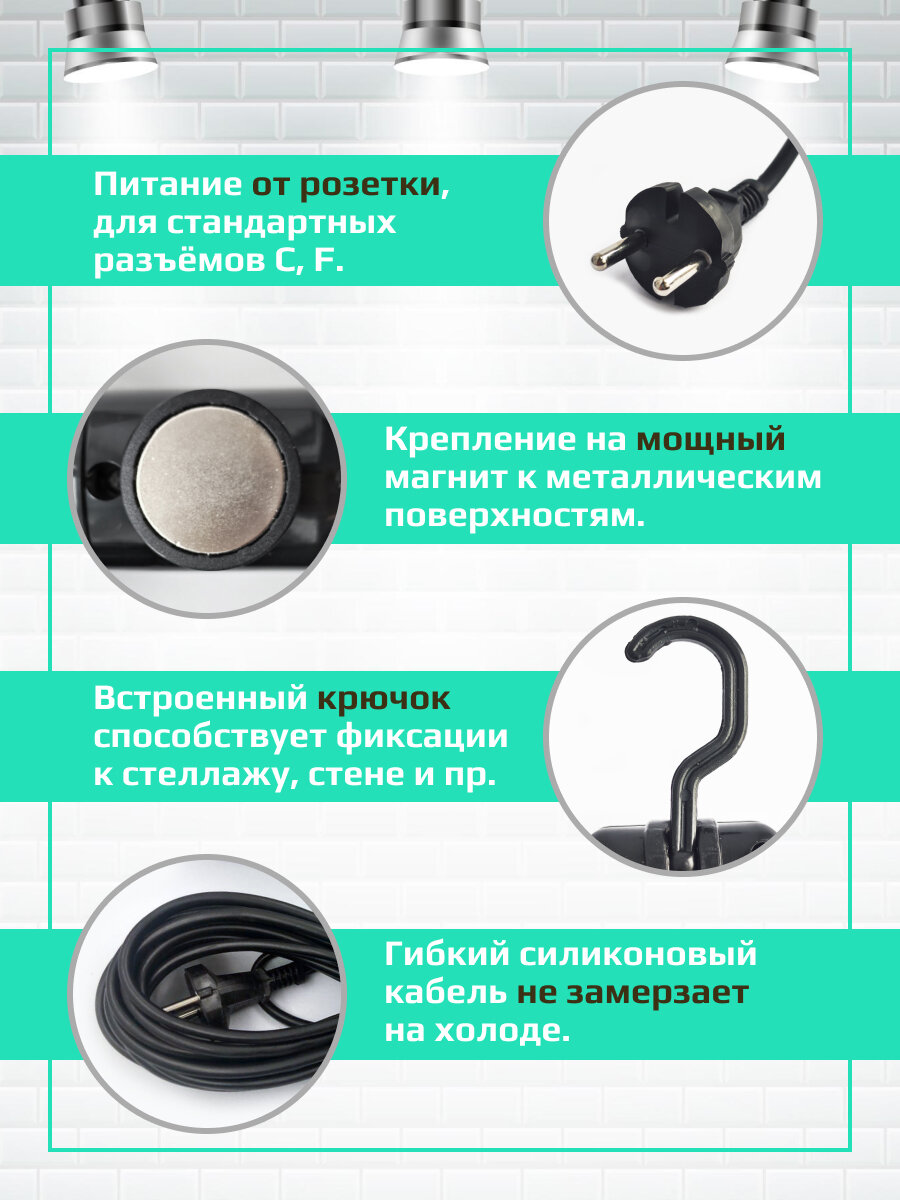 | Особенности | выключатель / крючок для подвешивания / магнит для крепления |
