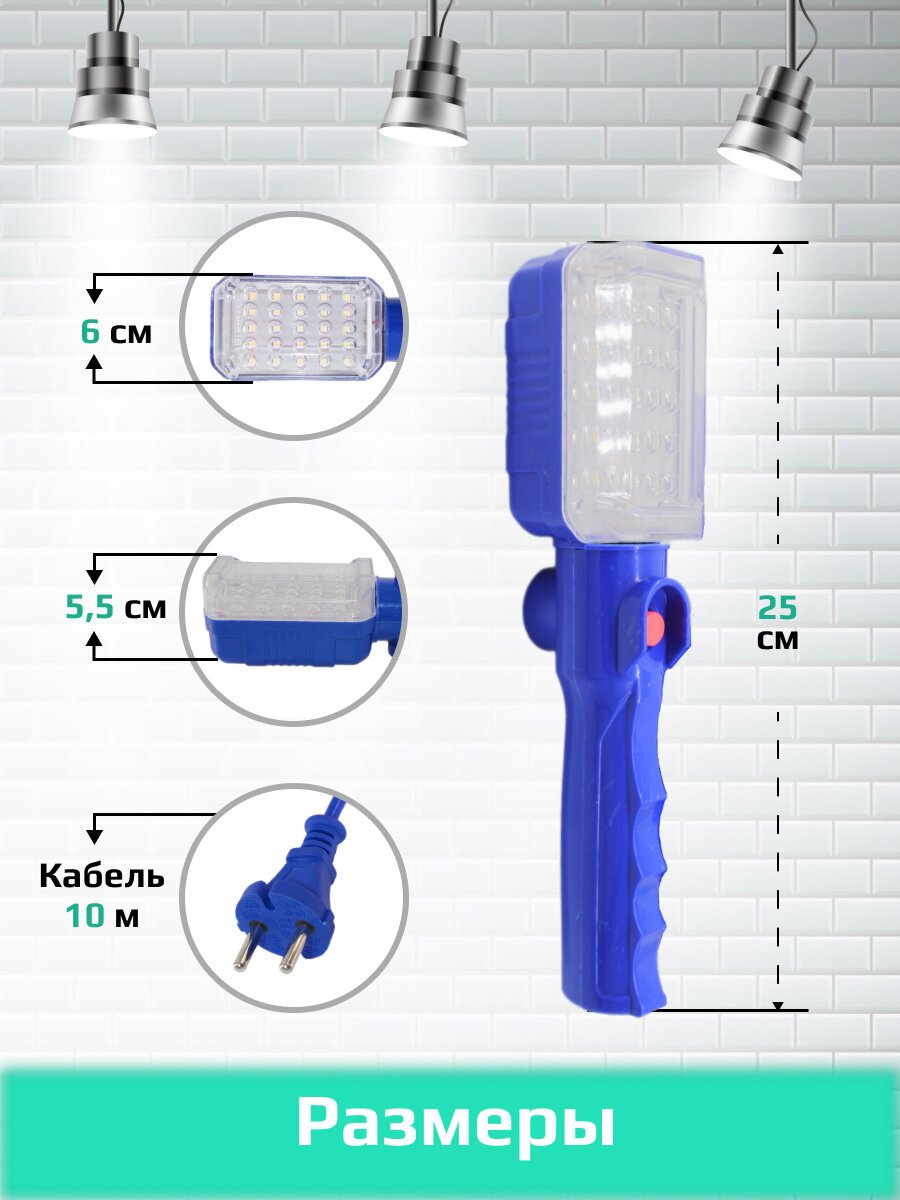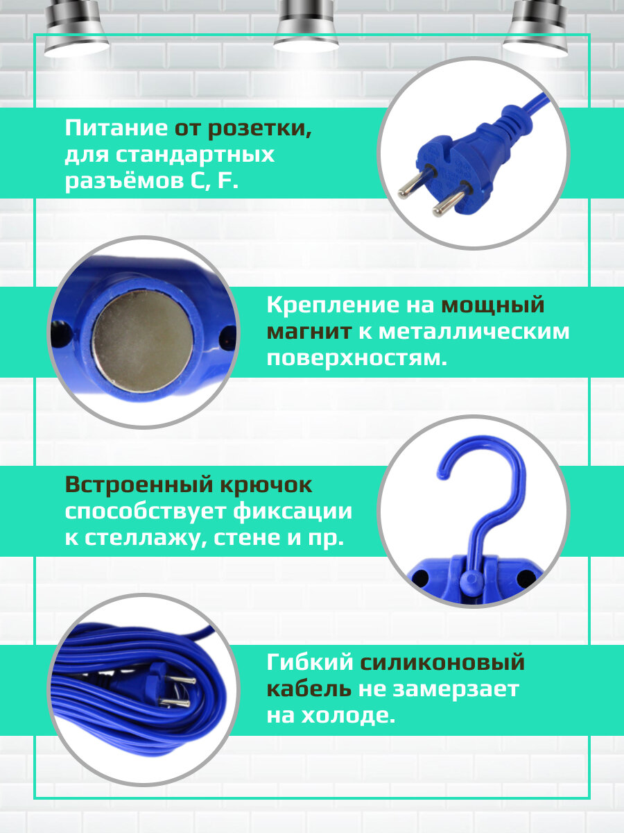 Купить Переноска-светильник/гаражная переноска/25LED ламп/с магнитом/10метров/синяя