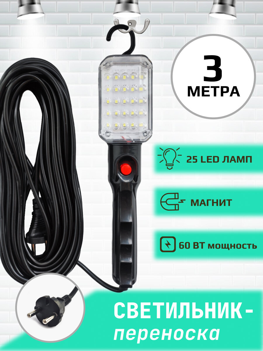 Купить Переноска-светильник/гаражная переноска/25LED ламп/с магнитом/3метра