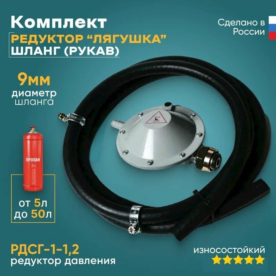 Комплект-редуктор газовый РДСГ 1-1.2 "лягушка" + шланг(рукав) резинотканный 2м+ 2 хомута. интересное: