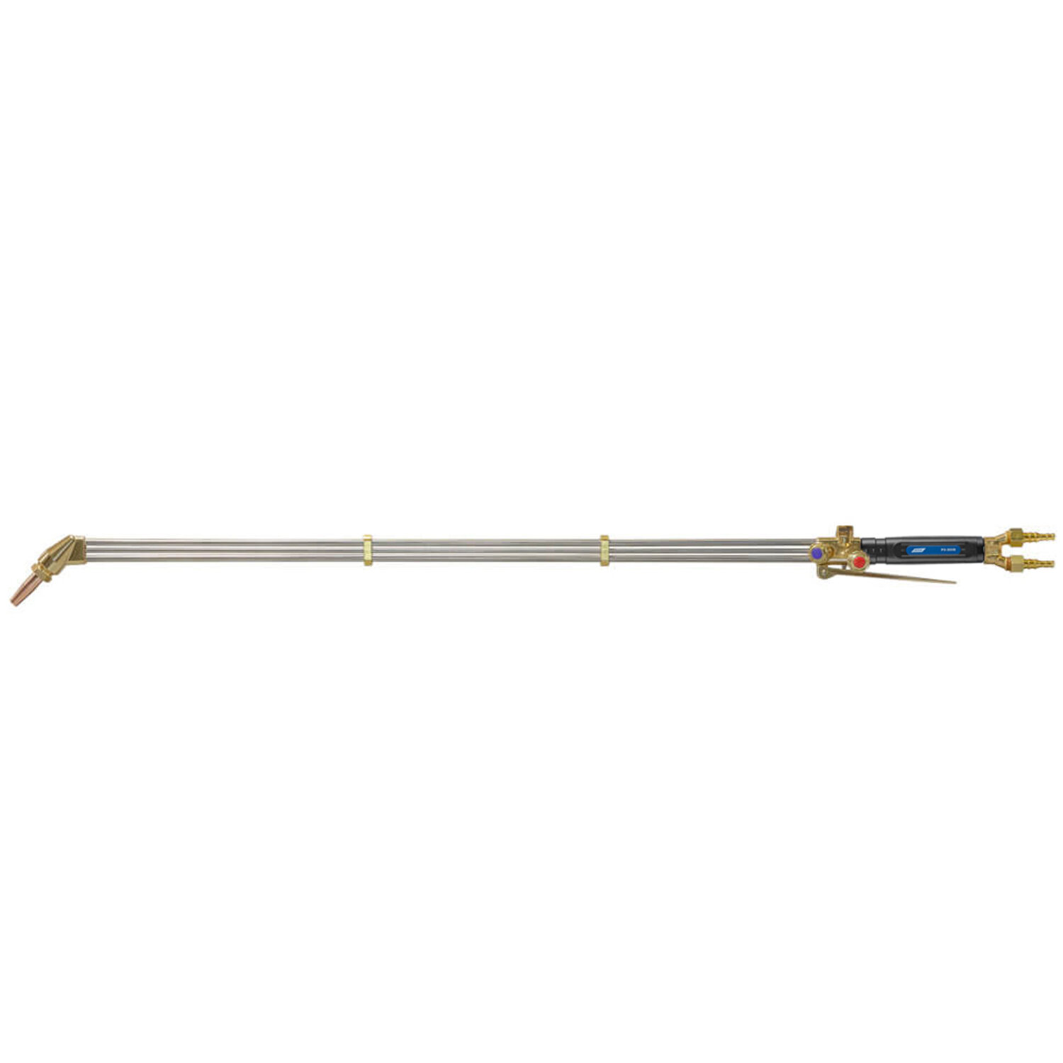 | Дополнительная информация | резак может работать на пропане и ацетилене, выбор газа зависит от установленных газосмесительных мундштуков, мундштуки имеют три запорных пояска, которые предотвращают перетечку газов и обеспечивают смешение газов непосредственно в мундштуке, обеспечивая безопасное использование; давление газа на входе и расход зависит от установленного мундштука, в руководстве по эксплуатации указаны ориентировочные данные; резак не требует установки огнепреградительных клапанов; длина резака 1100 мм; угол наклона головки резака в 135° |