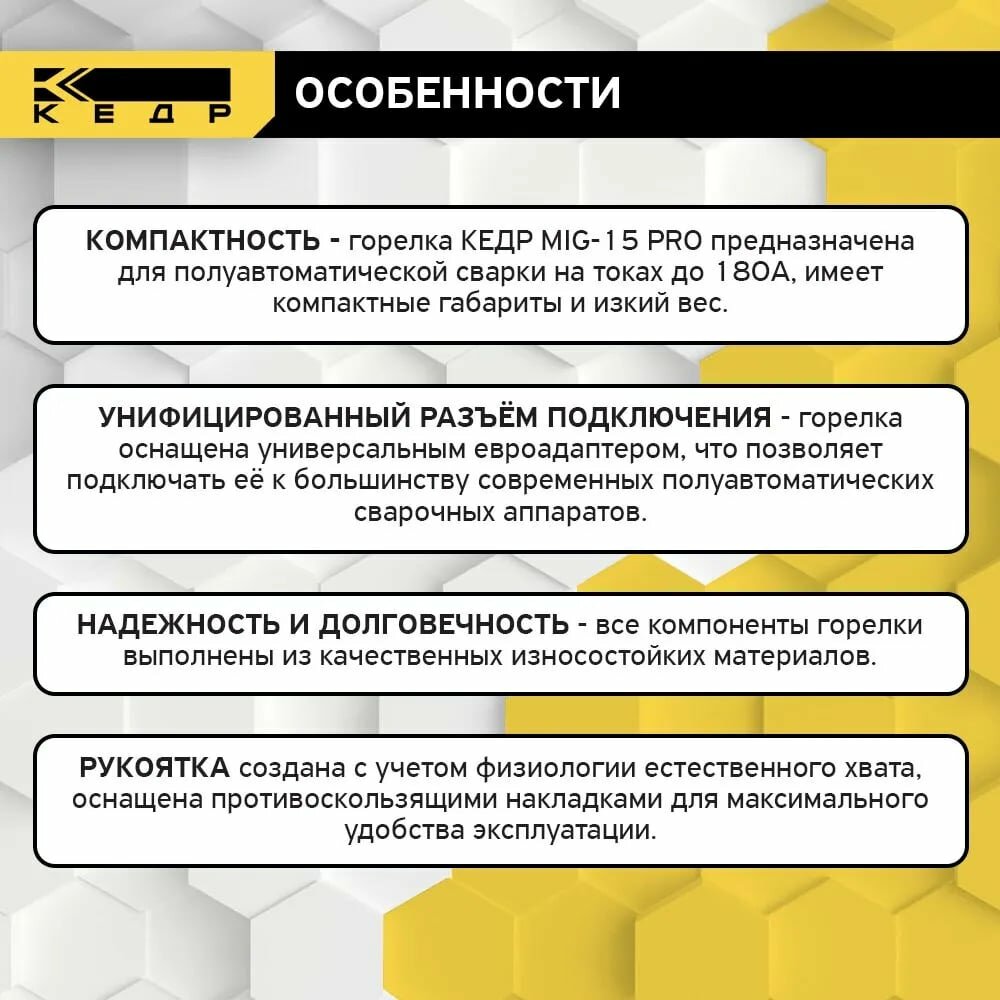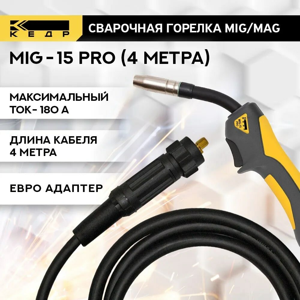 Горелка сварочная для полуавтомата MIG MAG кедр MIG-15 PRO (евро адаптер) 4м 7150003 интересное: