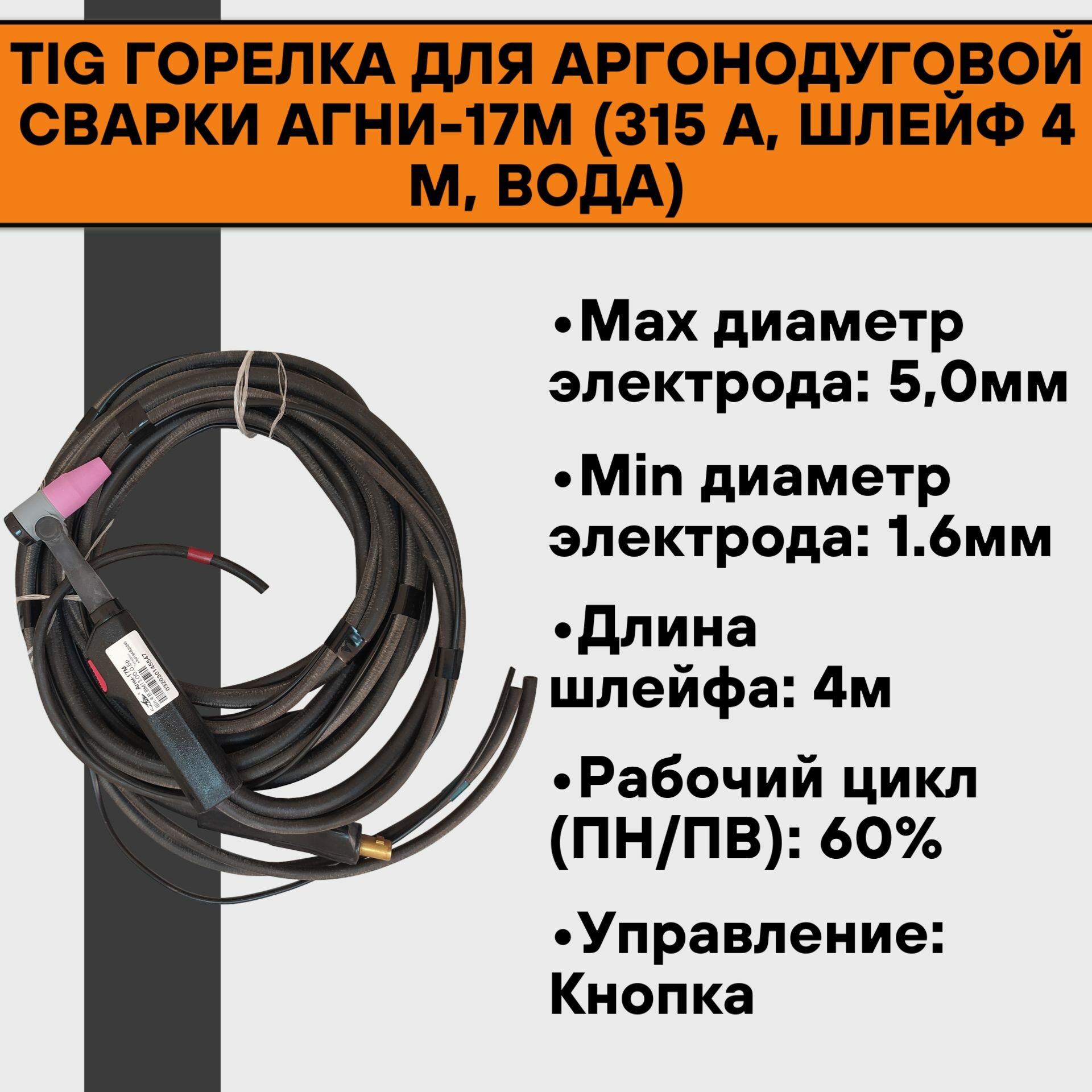 TIG Горелка для аргонодуговой сварки АГНИ-17М (315 А, шлейф 4 метра, вода) интересное: