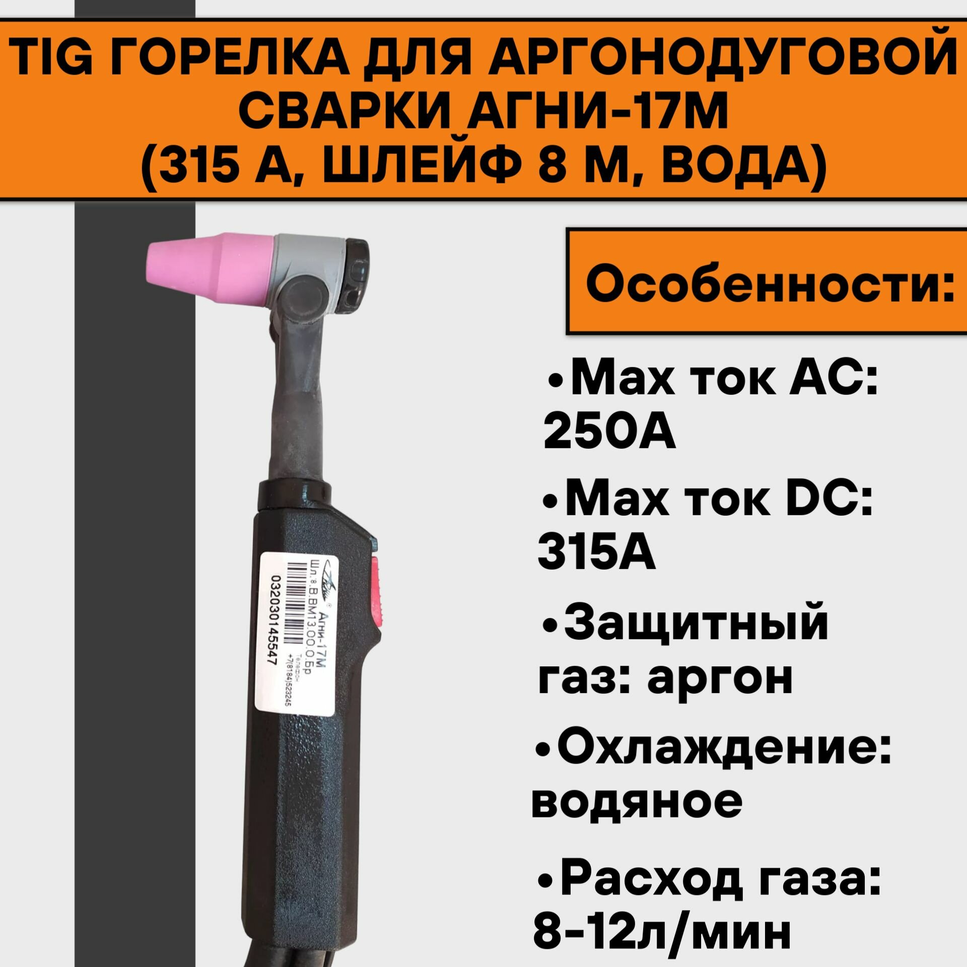 TIG Горелка для аргонодуговой сварки АГНИ-17М (315 А, шлейф 8 метров, вода) интересное: