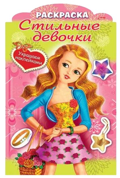 Книжка-раскраска Hatber А4 8 л., фигурная высечка и наклейки, Девочка с цветами (R237458) интересное:
