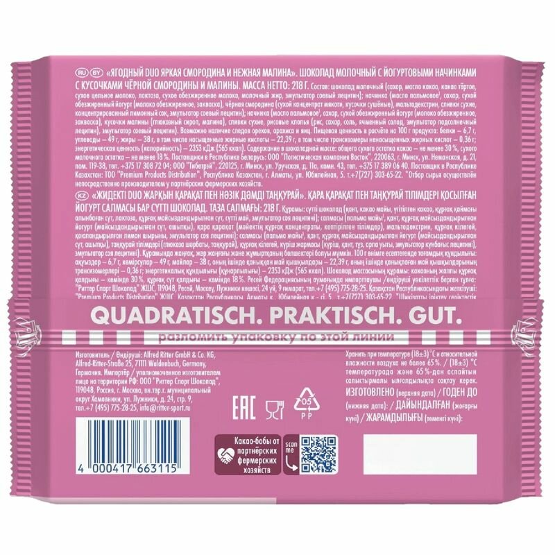 Ritter Sport Шоколад DUO смородина/малина 218 гр интересное: