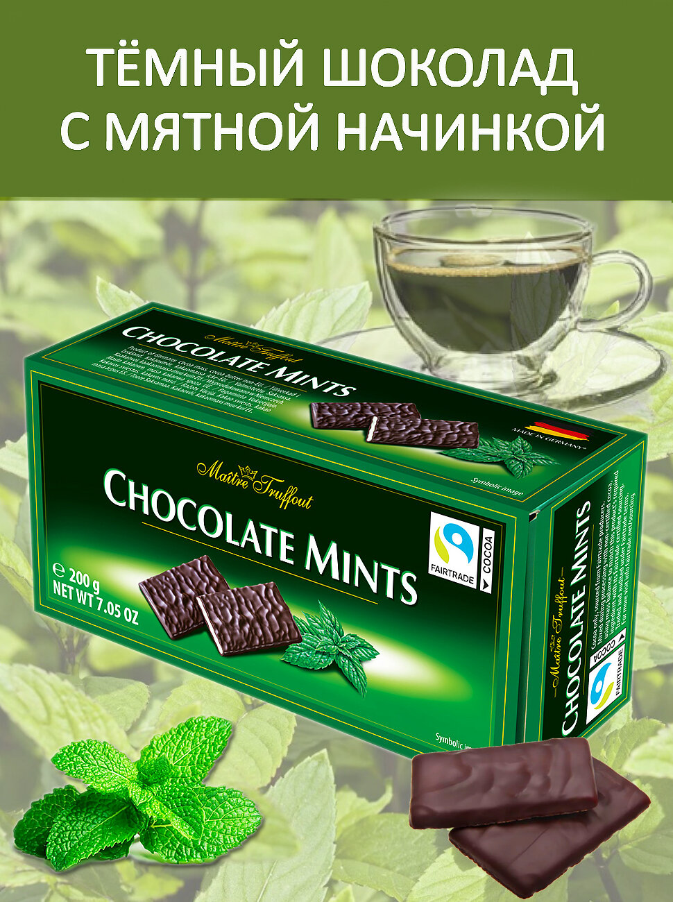 СохранитьТемный шоколад с мятной начинкой Maitre Truffout 200 г (Из Финляндии) интересное:
