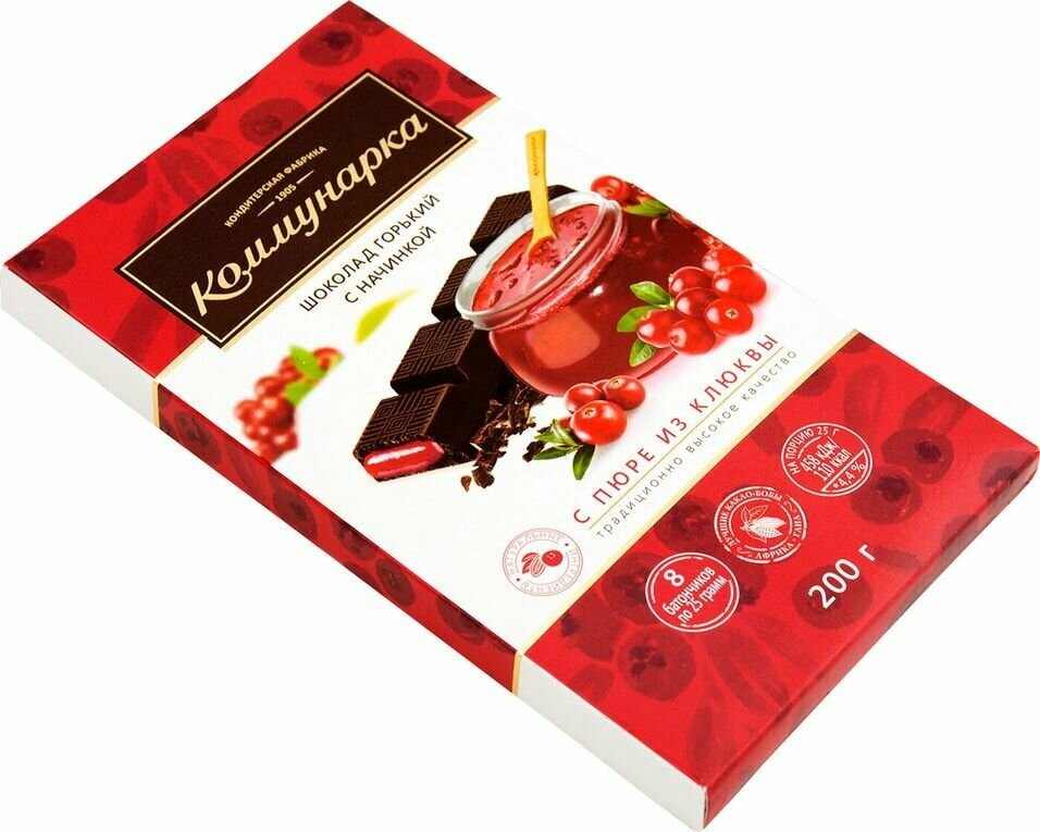 Коммунарка Шоколад темный, С пюре из Клюквы, 200 г