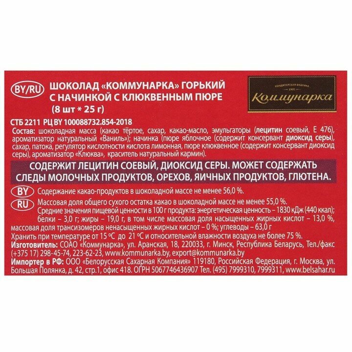 Ниже Вы можете прочитать отзывы на Шоколад горький Коммунарка "Клюква" порционный 200 гр - 2 шт, ознакомится с подробными характеристиками, посмотреть интересные обзоры и фотографии на Шоколад горький Коммунарка "Клюква" порционный 200 гр - 2 шт.