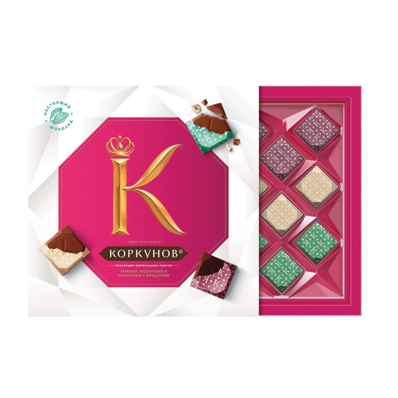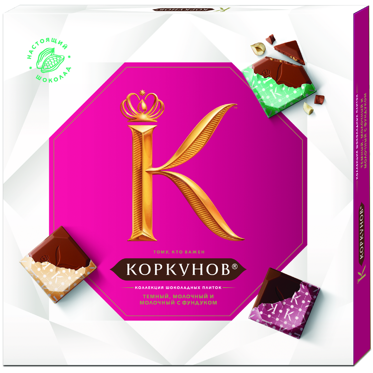 Подарочный набор Коркунов, Коллекция шоколадных плиток из темного и молочного шоколада с дробленым фундуком, 131г интересное:
