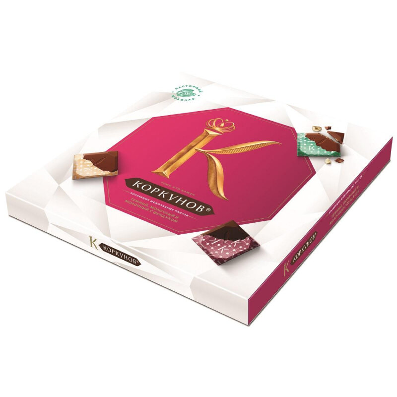 Набор шоколадных плиток коркунов молочный,темный,молочный с дробленным фундуком, 131г