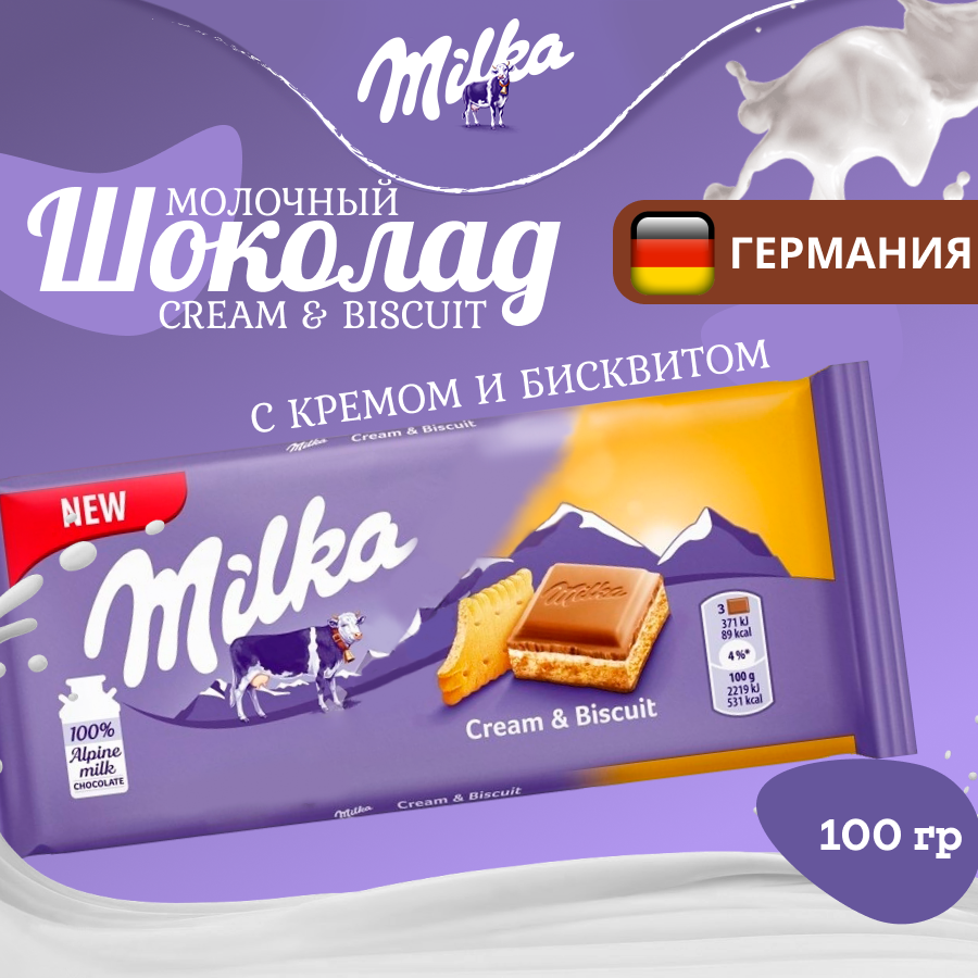 Шоколадная плитка Milka Cream & Biscuit / Милка Крем & бисквит 100 г. (Германия) интересное:
