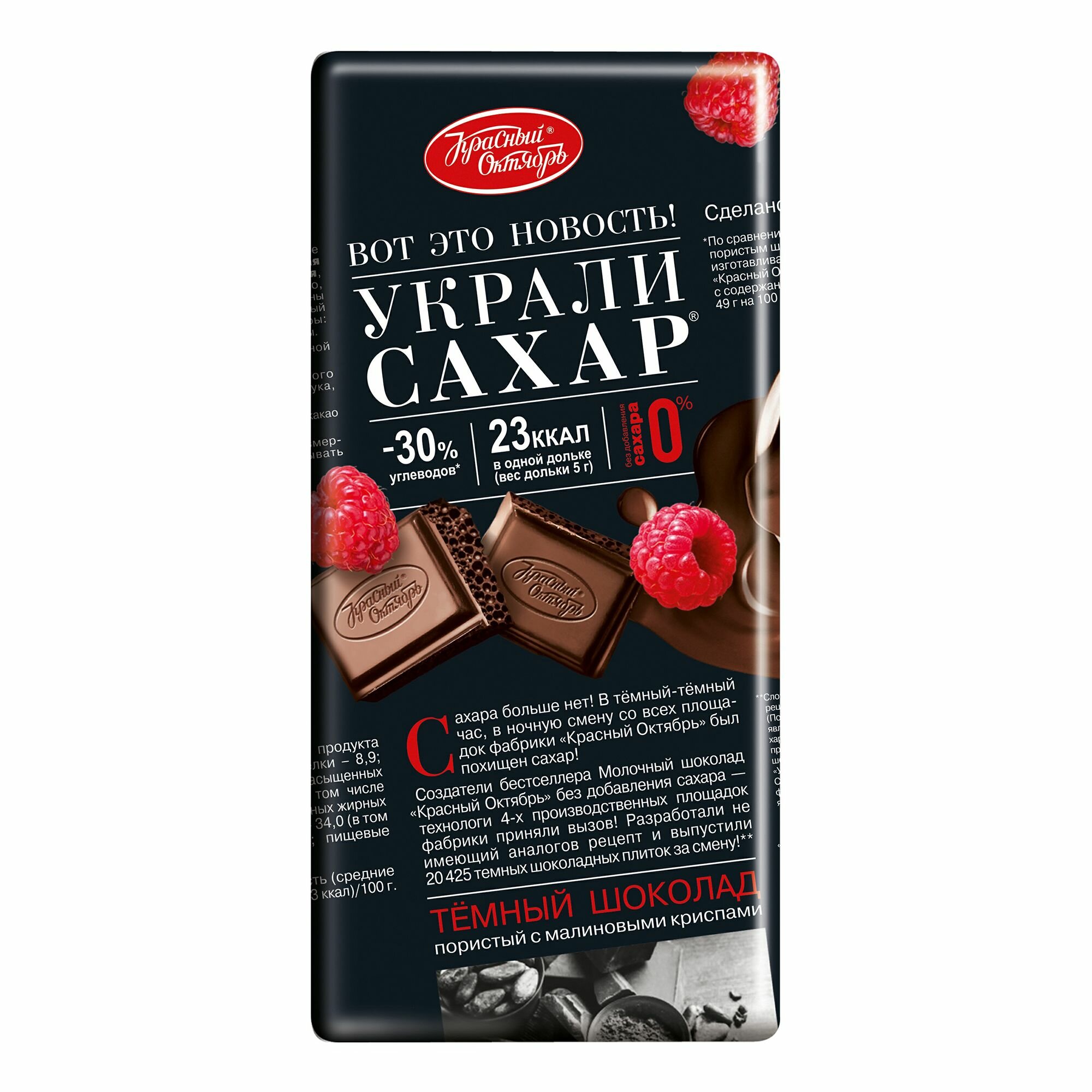 ШОКОЛАД_Красный_Октябрь_темный_пористый_с_хрустящими_криспами_малины_1/75_Украли_сахар интересное: