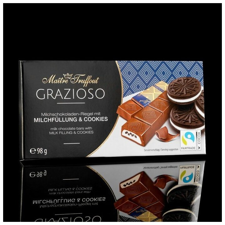 Купить Молочный шоколад с молочной начинкой с кусочками печенья в мини-батончиках, 98 г