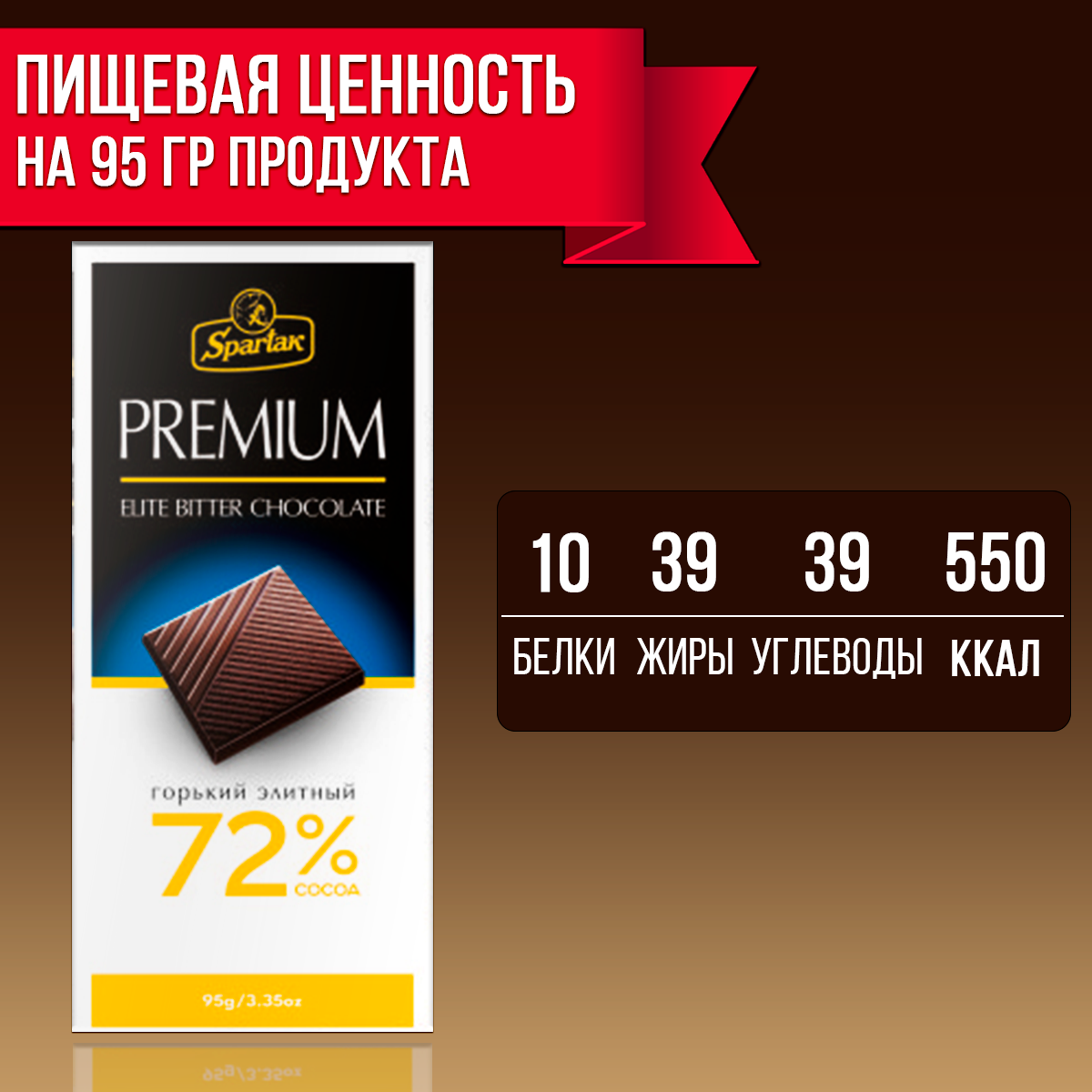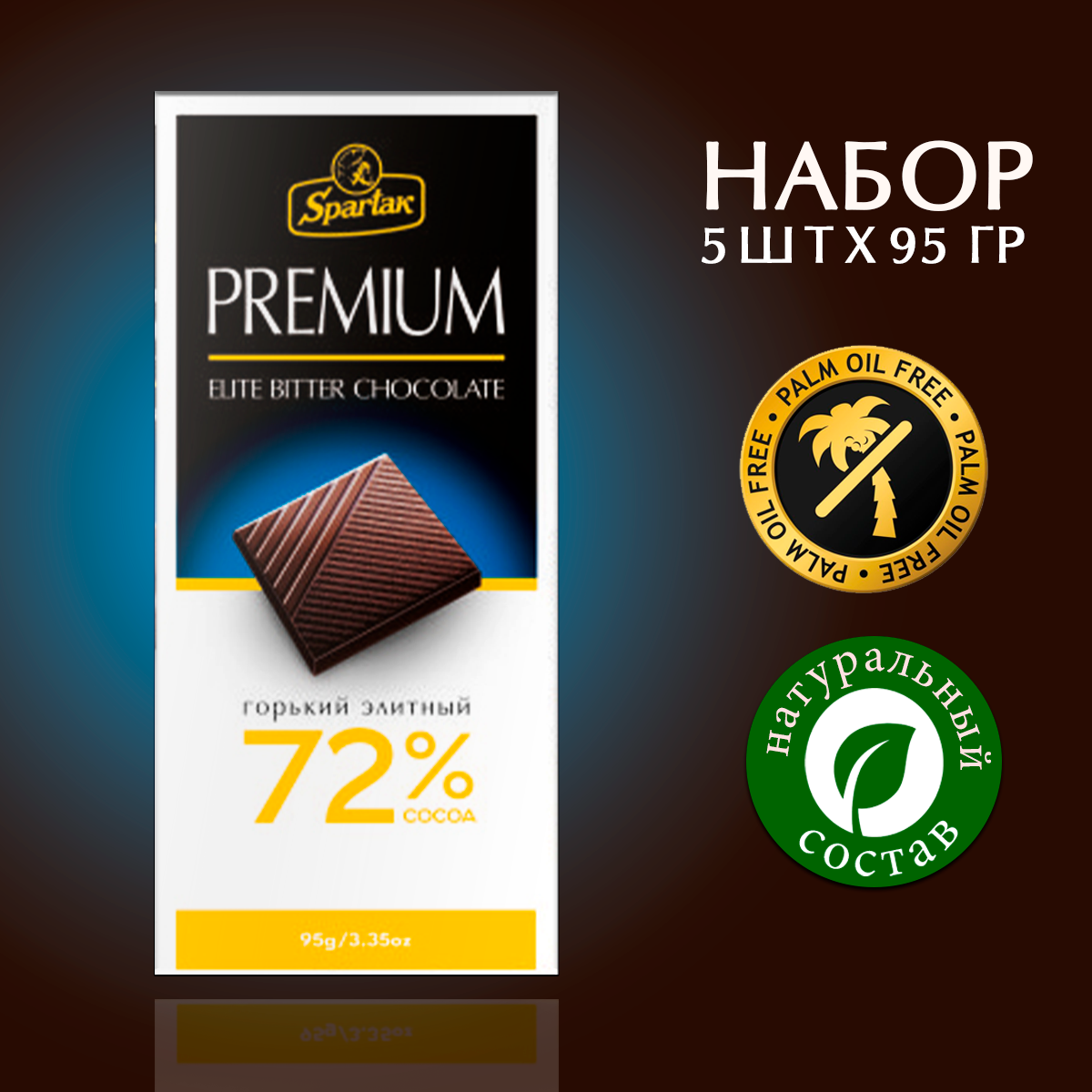 Шоколад горький элитный 72% тонкий Спартак 5 шт по 95 г интересное:
