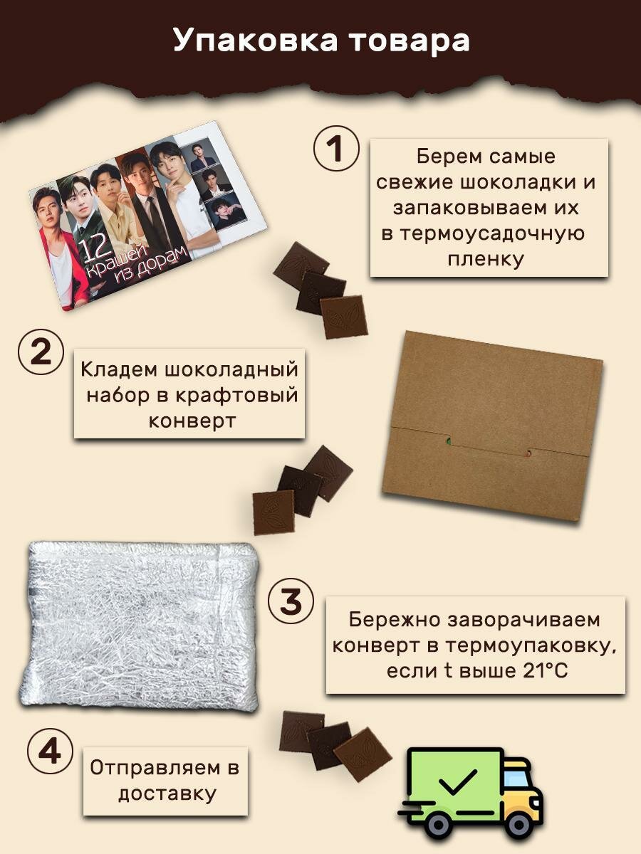 Шоколадный подарочный набор с корейскими актерами из дорам, 12 плиток интересное: