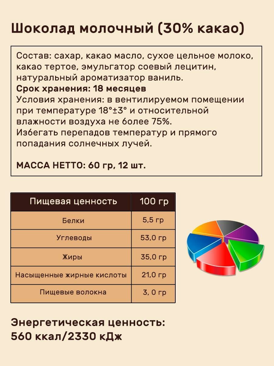 | Вид шоколада | молочный |