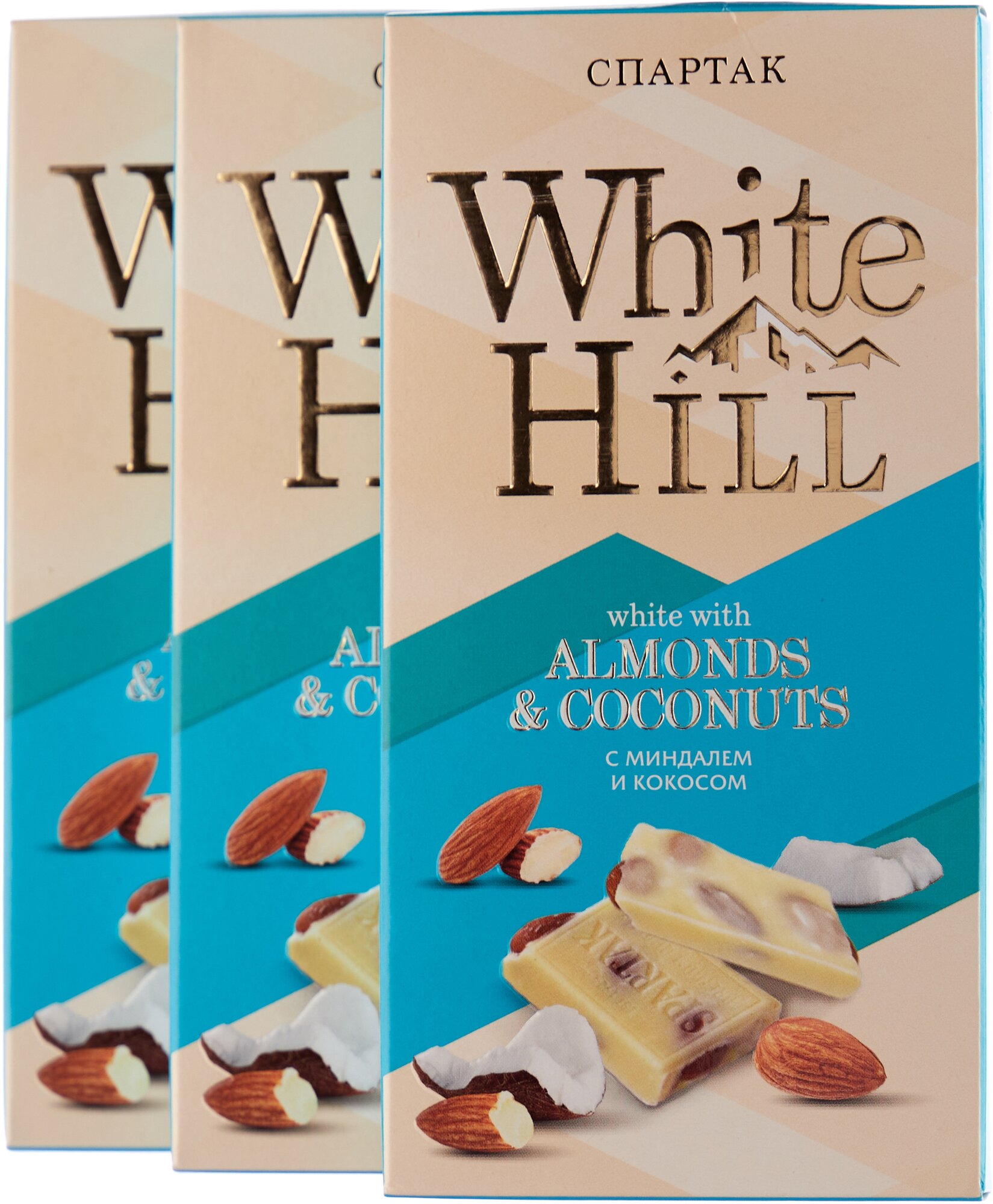Купить Шоколад белый с миндалем и кокосом White Hill, Спартак, 90 гр.* 3шт.