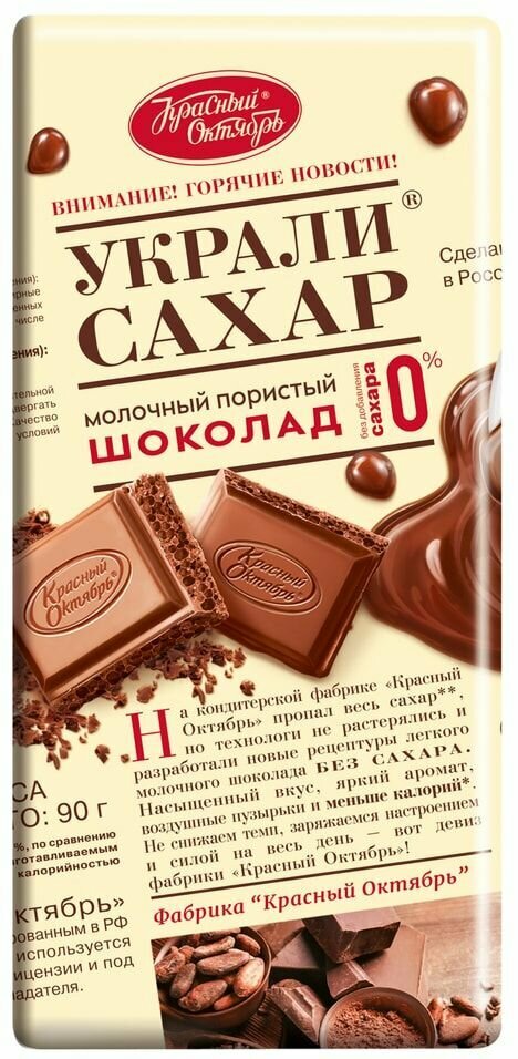 ШОКОЛАД_Красный_Октябрь_молочный_пористый_без_сахара_1/90_Украли_сахар интересное: