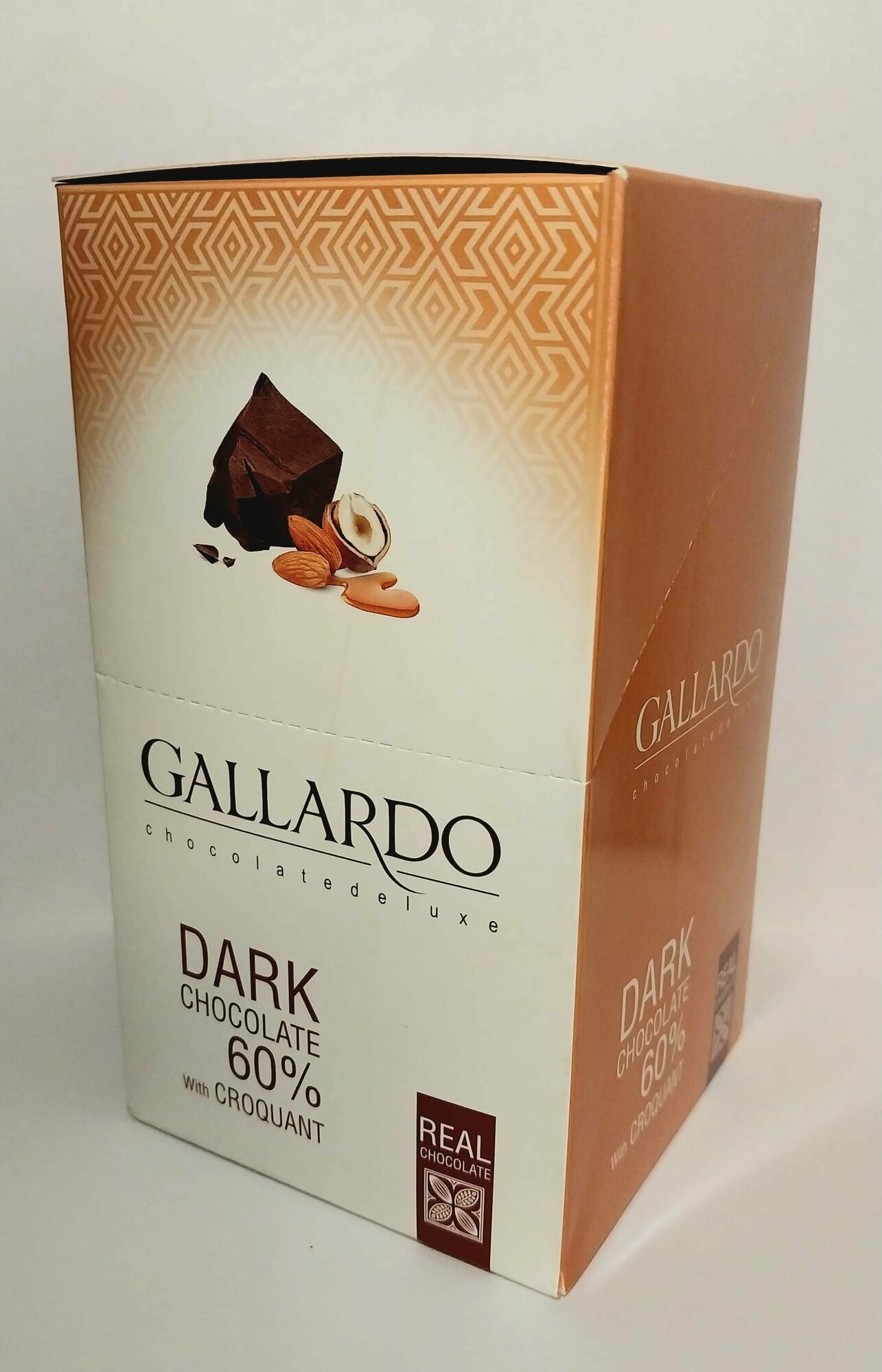 Купить Шоколад Gallardo темный с грильяжем 24шт х 23гр