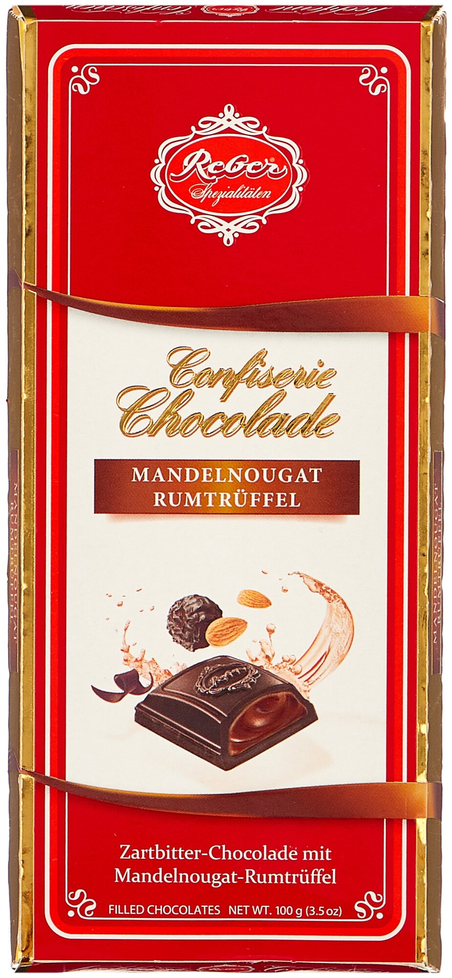 Шоколад REBER 4009 горький Almond Praline-Rum трюфельной начинкой из миндаля и рома 100г