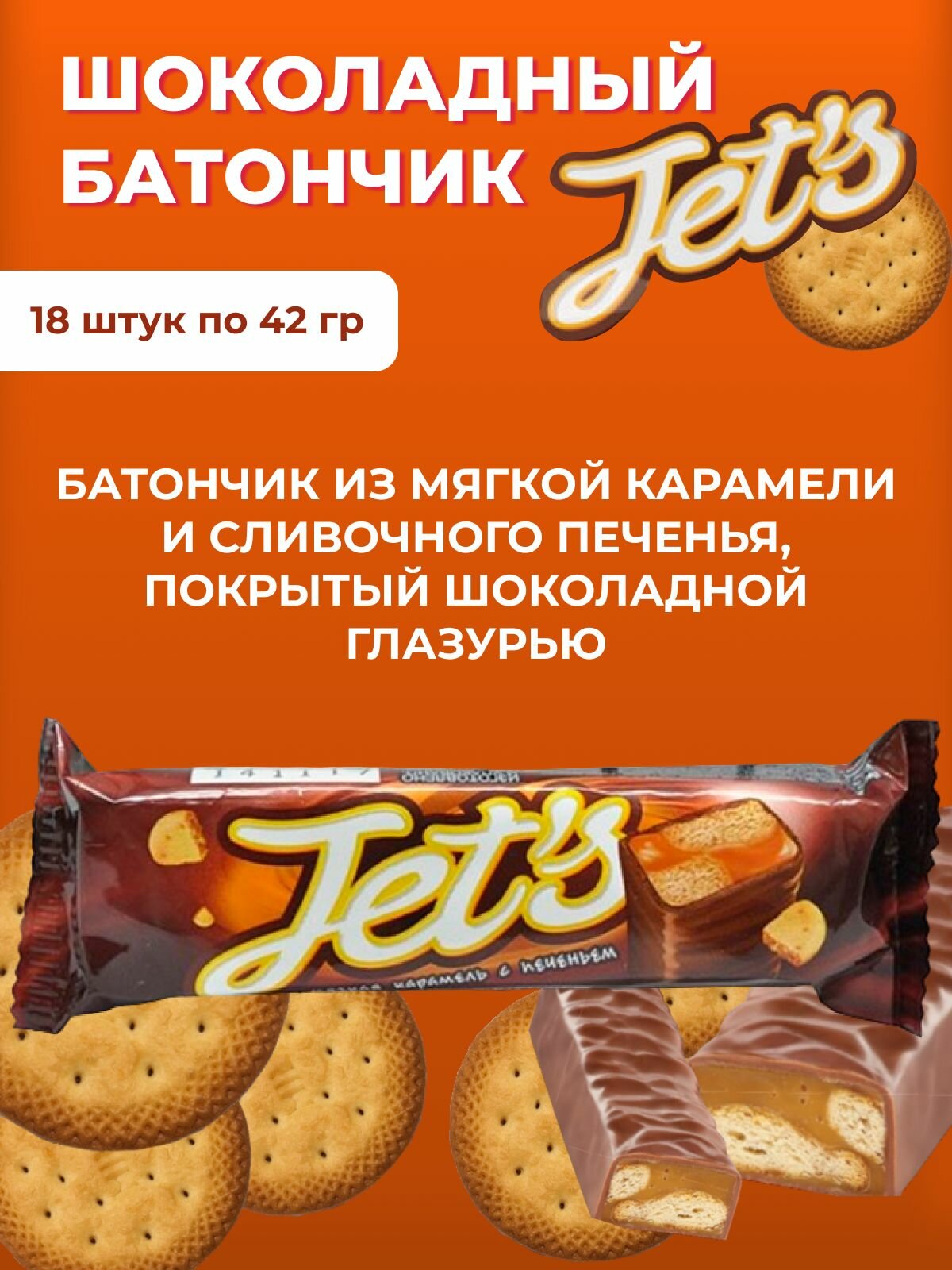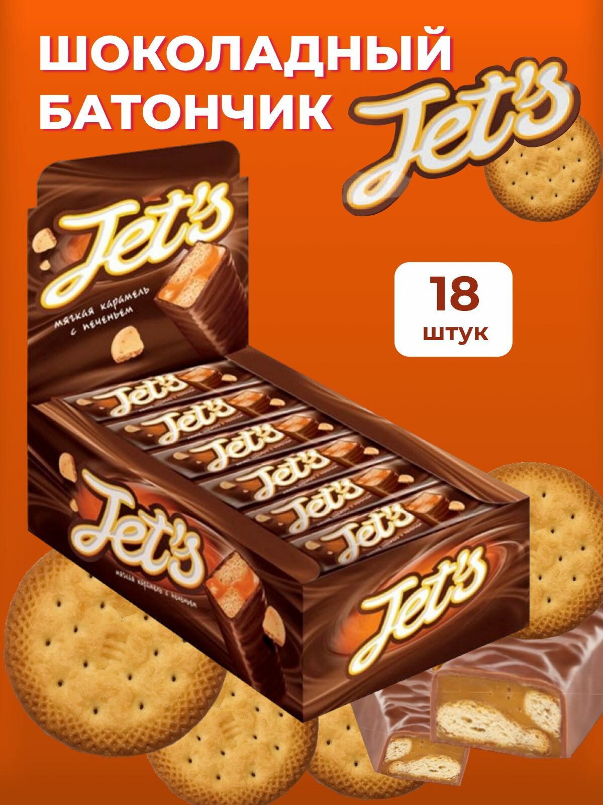 Батончик Jet's с печеньем и мягкой карамелью, 42 г, 18 шт.