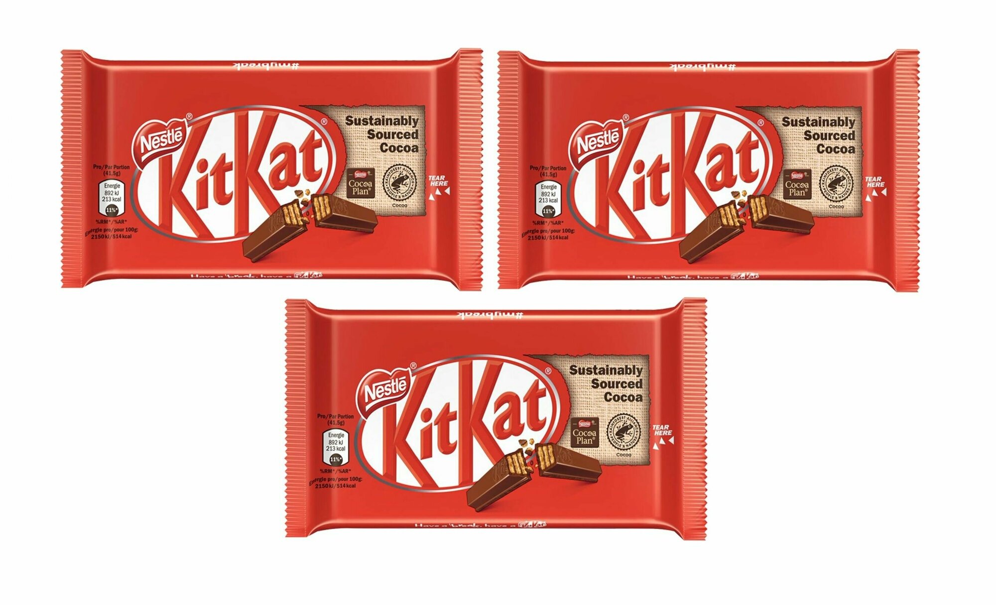 Шоколадный батончик KitKat покрытый молочным шоколадом с хрустящей вафлей, 3 шт. по 41,5 гр. (Германия)