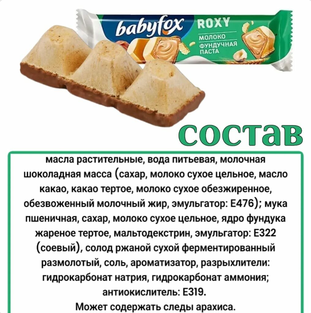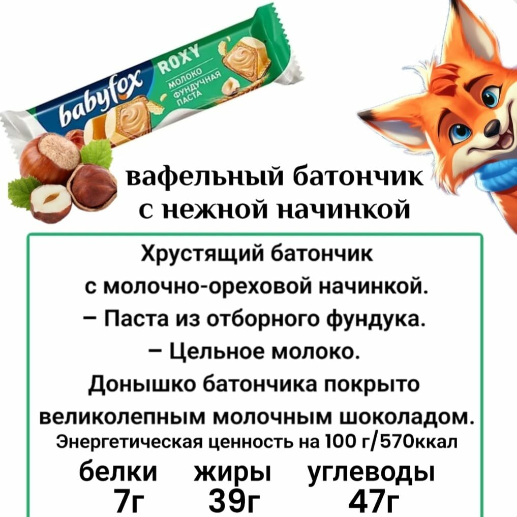 «BabyFox», вафельный батончик Roxy Молоко/фундук 24 шт. интересное: