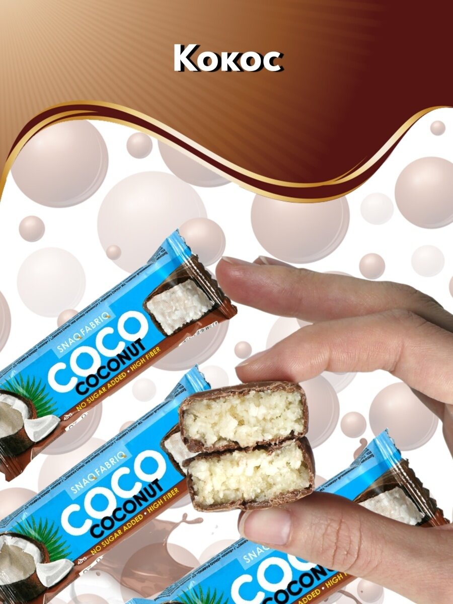 Батончик Snaq Fabriq COCO COCONUT, глазированный с начинкой кокос, с высоким содержанием клетчатки, 40 гр, 5 шт