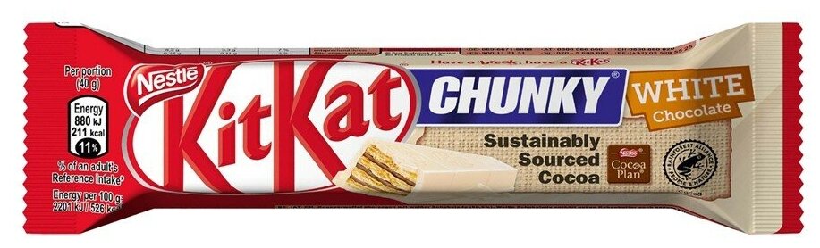 СохранитьШоколадный батончик KitKat Chunky White, с белым шоколадом, 40 гр интересное: